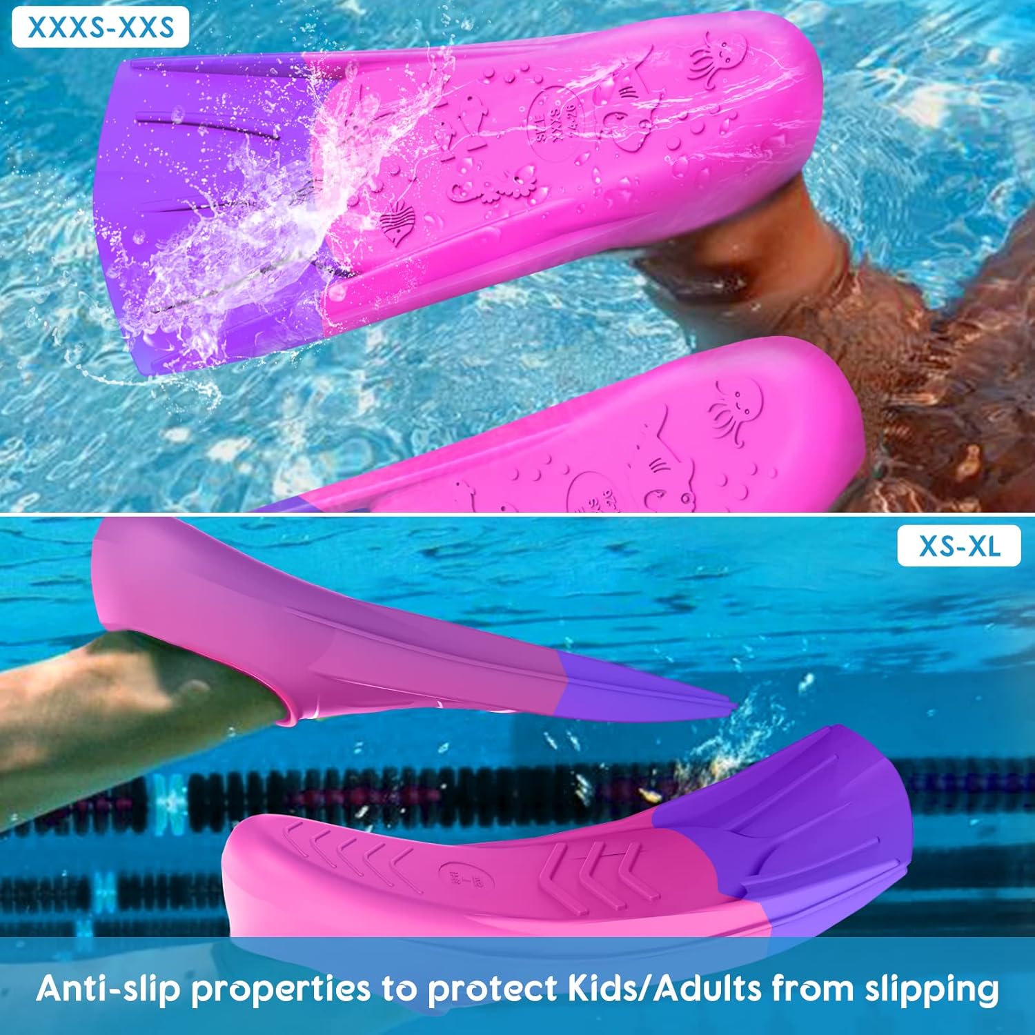 Gintenco Swim Fins, Kids Swim Training Fins for Lap Swimming, Travel Size Flippers with Mesh Bag, Silicone Swimming Fins for Kids Teens Adults Women Men