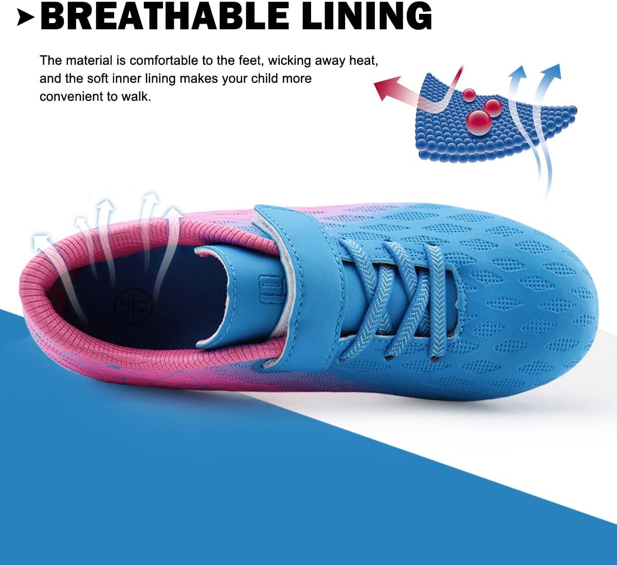 • Kids comfortable outdoor soccer cleats are good choices at football court, rugby field, sports hall and road.
