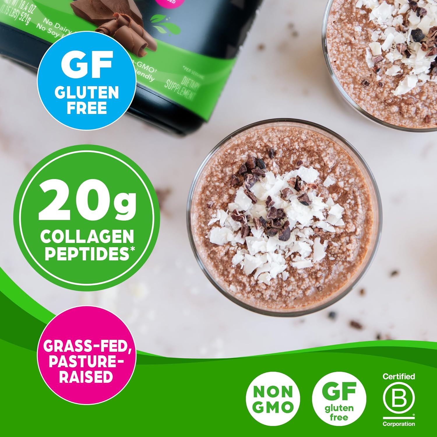 - CLEANER INGREDIENTS: Includes hydrolyzed grass-fed, pasture-raised bovine collagen peptides and essential amino acids: Lysine, Leucine, Histidine, Methionine, Isoleucine, Phenylalanine, Theronine, Valine