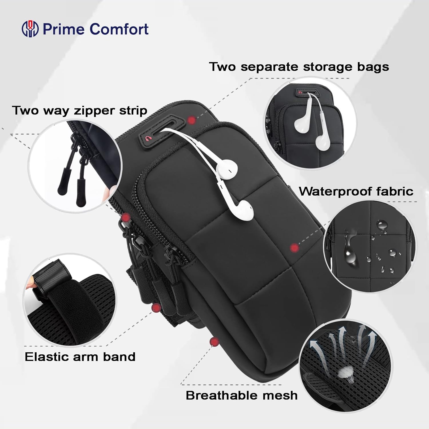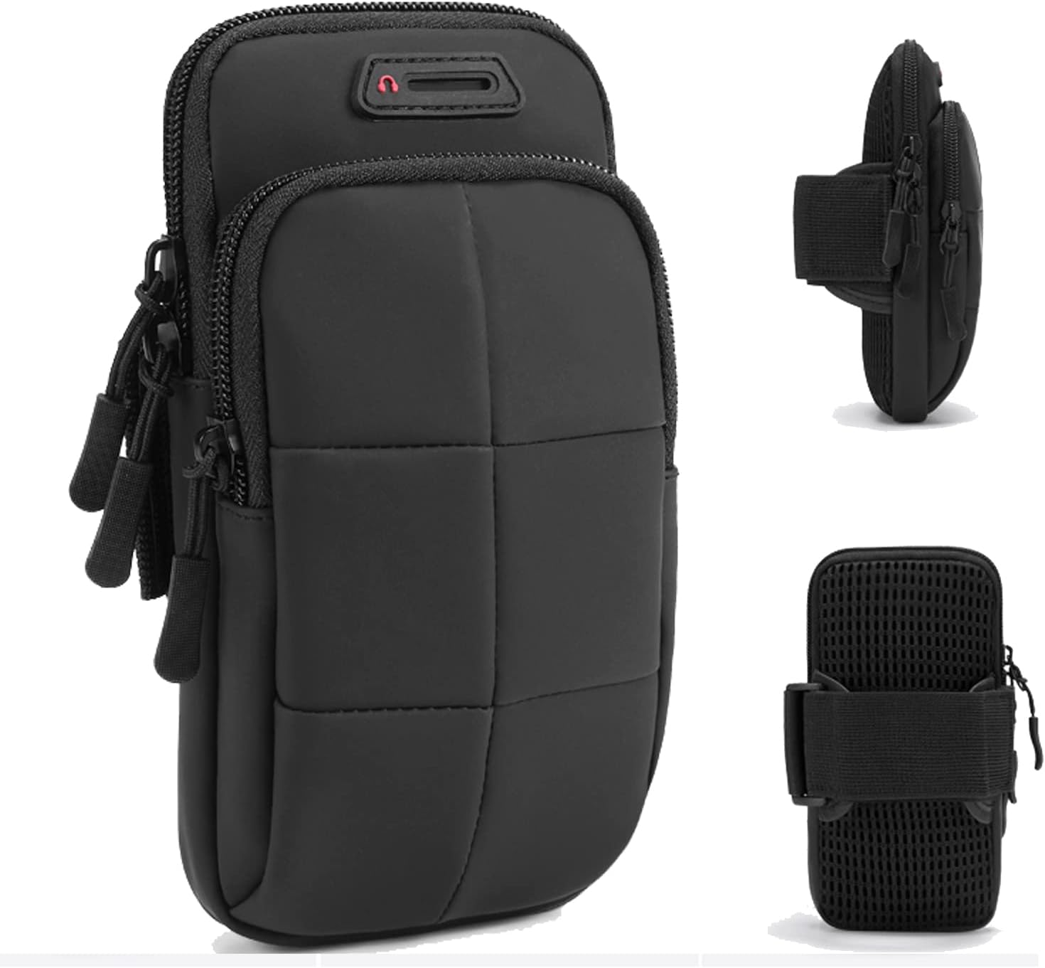 - [Secure Protection]This running armband with double deck and double zipper exercise pouch provides large and safe space for your cellphone as well as your house or car keys, ID/credit cards, cash, earphone, iPod & other accessories whilst doing outdoor activities. Never worry about losing them. Also, headphone and charger cutouts allow convenient access to the phone for hands free and listening music.