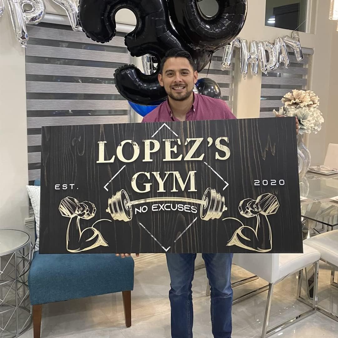 - Perfect Gift - Surprise them on their birthdays, Business and Housewarming; Perfect for Him, athletes, enthusiasts, Friends, Gym Owners. Make it personal by adding family or business name and Hang it on your Wall, Home Gym, Door, Workout Room, Entrance .