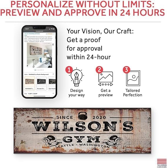 - You get a Preview with a Lifetime Warranty - Check your Personalized Gym Sign Wall Art Decor sent by our Quality Control Team within a day via Amazon Messaging; Love it or We'll make it right for you, no questions asked! Click "Customized Now" & Lets turn your Ideas into Reality!