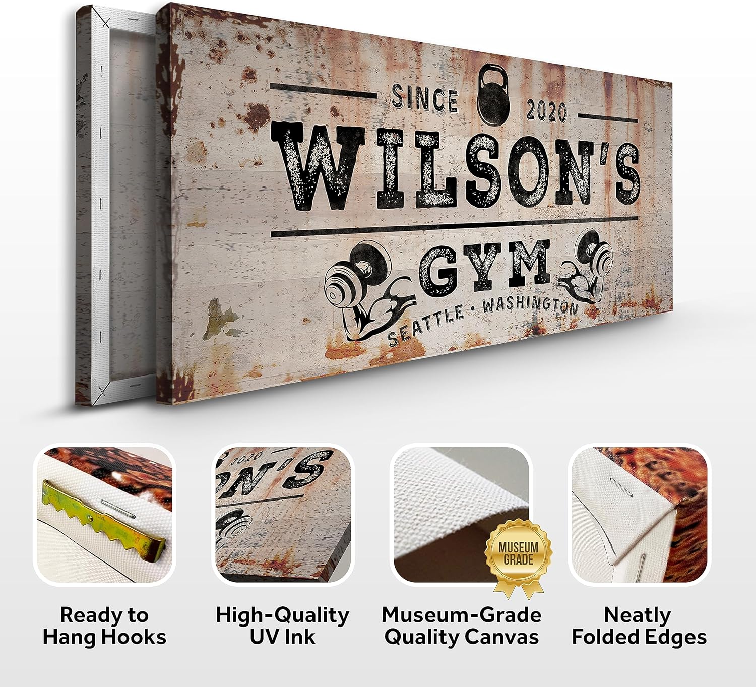 - Museum-Grade Quality - This Gym Sign Wall Art Decor is Prime Gallery-Wrapped Canvas; No sagging, dents, accidental rips; Printed using UV-Resistant Ink with a neatly folded edge