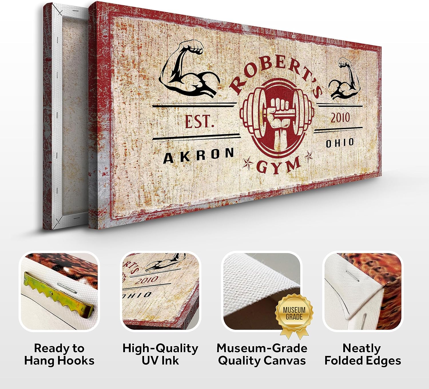 - Museum-Grade Quality - This Gym Sign Wall Art Decor is Prime Gallery-Wrapped Canvas; No sagging, dents, accidental rips; Printed using UV-Resistant Ink with a neatly folded edge