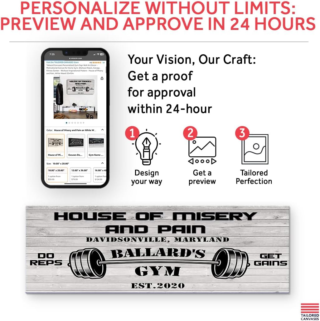 - You get a Preview with a Lifetime Warranty - Check your Personalized Gym Sign Wall Art Decor sent by our Quality Control Team within a day via Amazon Messaging; Love it or We'll make it right for you, no questions asked! Click "Customized Now" & Lets turn your Ideas into Reality!