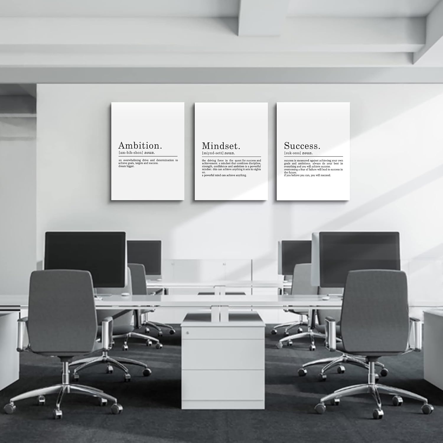 - 【Office Wall Art Decor】 The Size of the office canvas wall art set is: 20x30inchx3pcs (50x75cmx3pcs). The modern wall art prints perfectly combine quotes such as Execute, Failure, Success, making the artworks more inpirational and motivational. The inpirational wall art set is the best choice for home office gifts or boss office decoration.