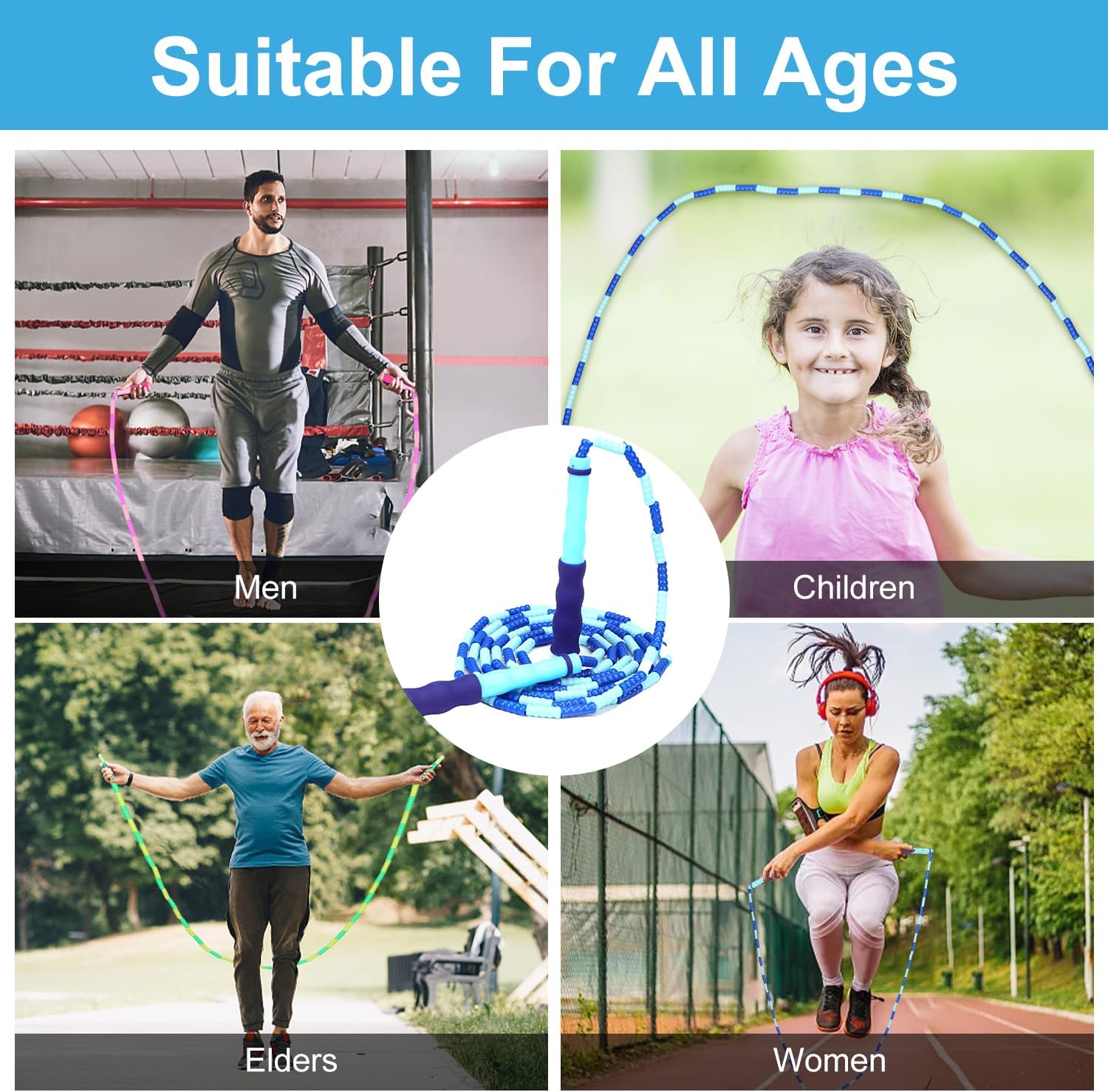 GRAWUN Jump Rope For Kids, Soft Beaded Jump Rope, Adjustable Length Tangle-Free Segmented Soft Beaded Skipping Rope,for Women, Men and Kids Keeping Fit, Workout and Weight Loss
