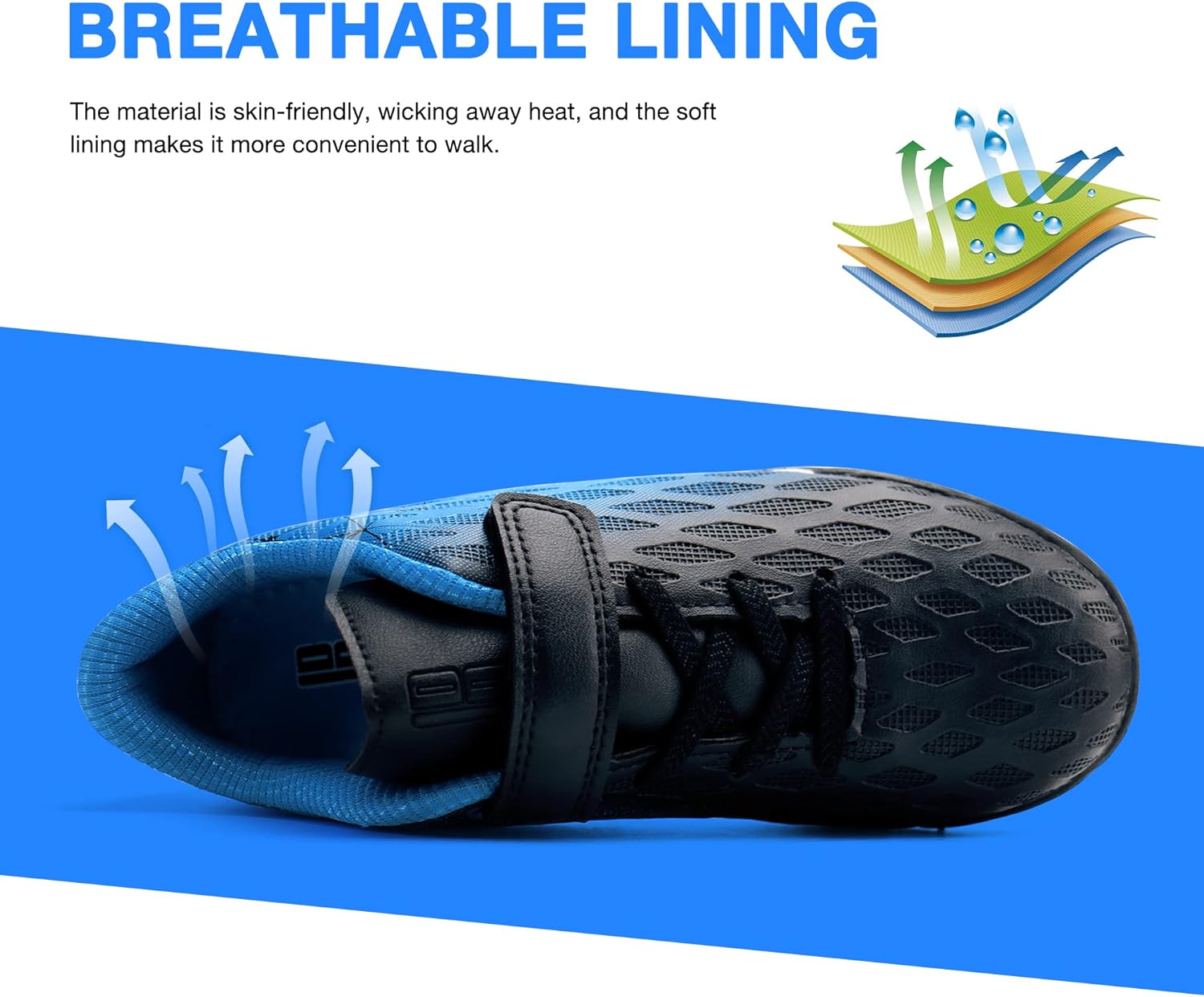 - The soft padded tongue fits his/her instep well and reduces foot friction.