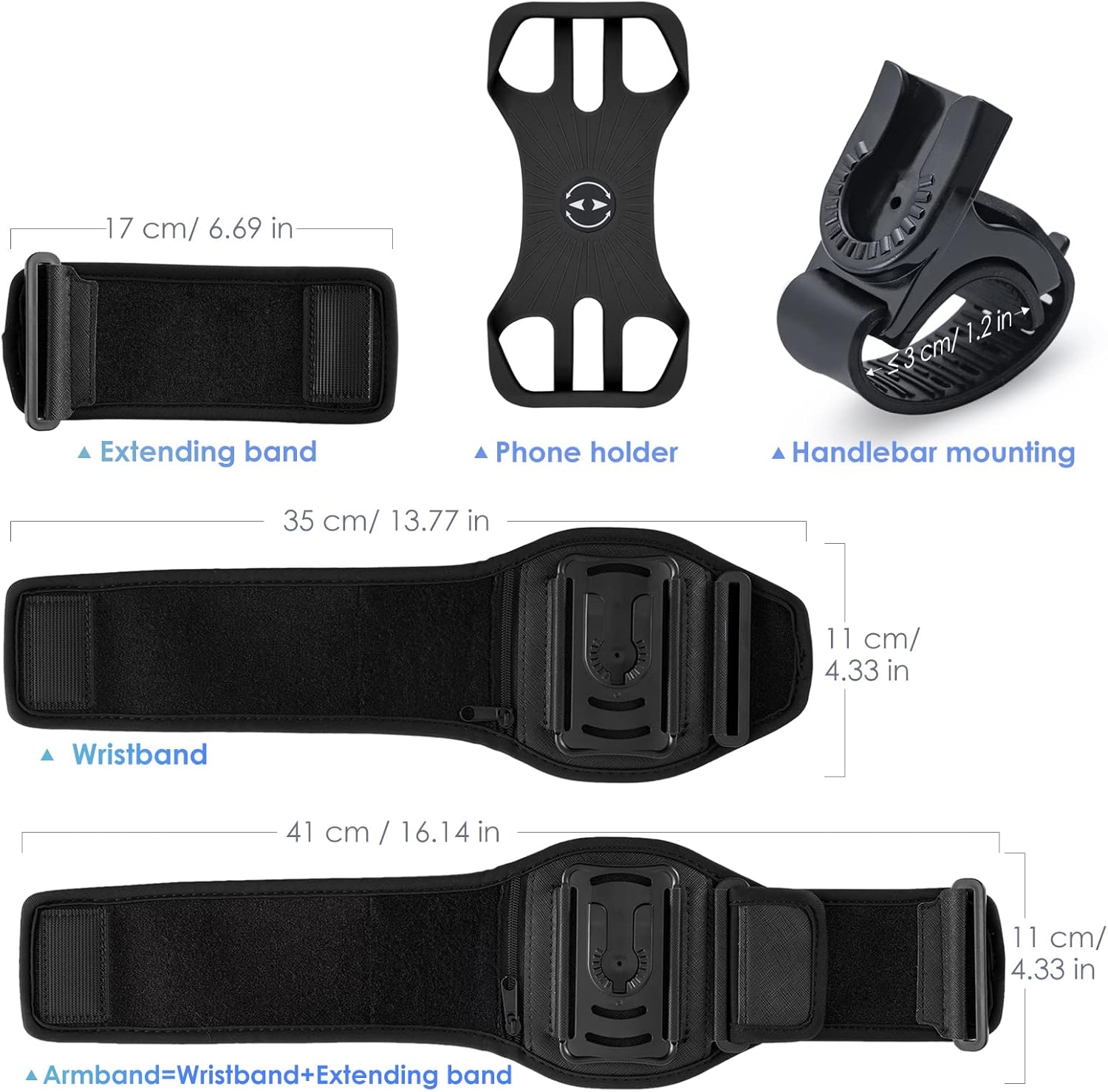 Cikyner Running Armband, 3 in 1 Running Phone Holder Sports Armband Bicycle Phone Holder 360° Rotatable & Detachable Running Phone Armband for 4.5-7'' iPhone Huawei for Gym Running Hiking