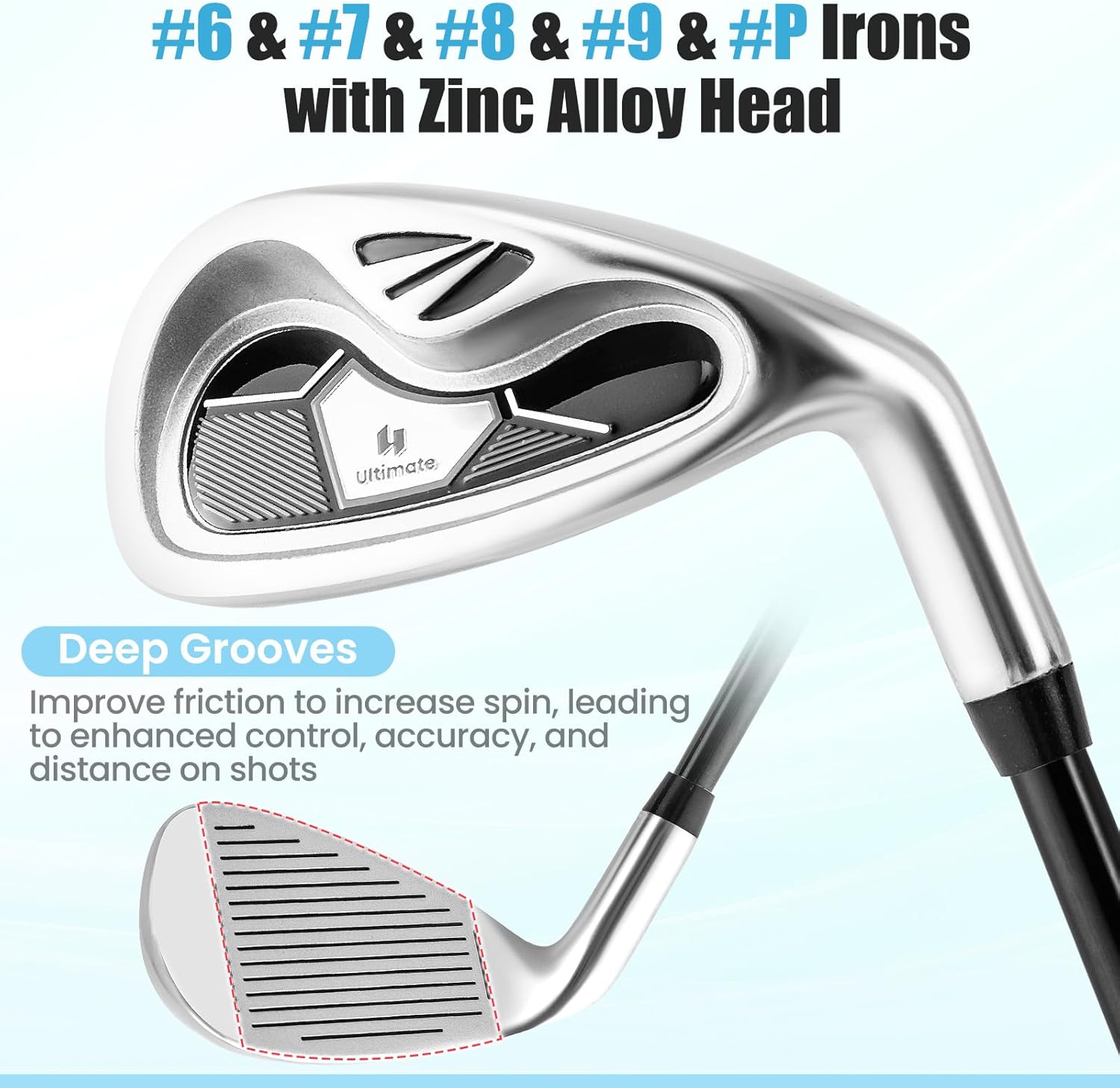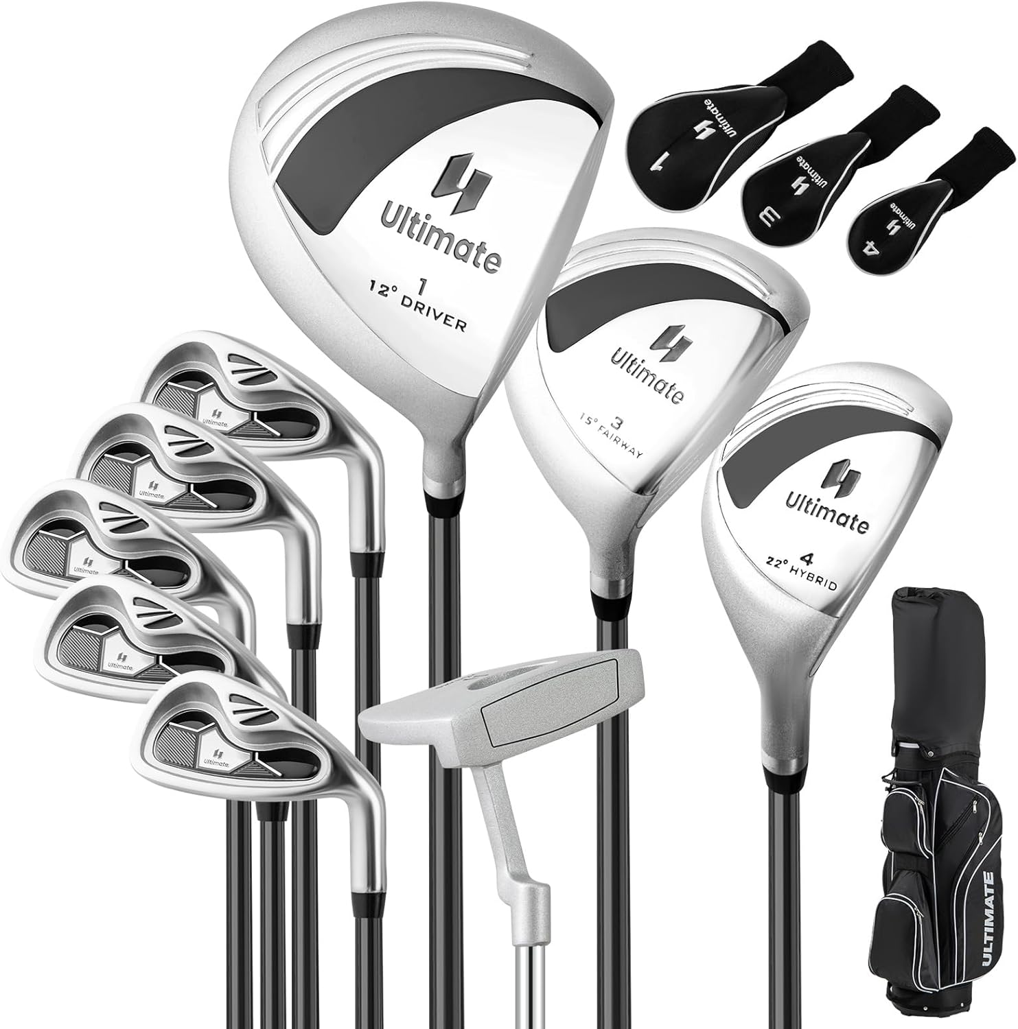 - Professional & Complete Golf Set: The completed golf clubs set with premium components and advanced materials perfectly meets all your needs. This set includes aluminum #1 driver, #3 fairway wood, #4 hybrid, #6/#7/#8/#9/#P Irons, putter and the lightweight golf cart bag. Besides, three extra head covers well protect the driver, fairway wood and hybrid.