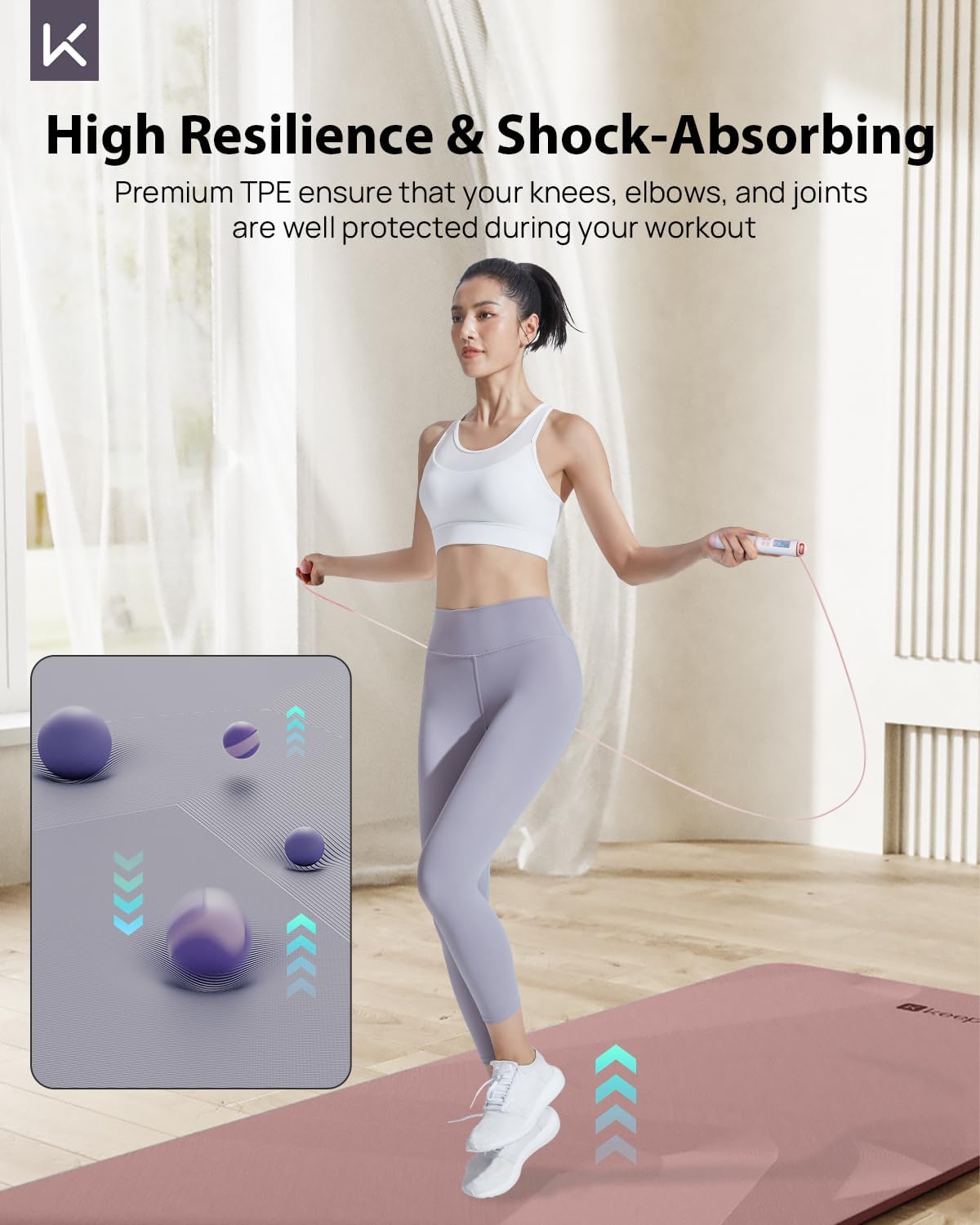- Double-Sided Non-Slip -- Our fitness mat features a fingerprint-like anti-slip texture on the top layer, offering precise grip and control during every pose. The bottom layer features a comprehensive anti-slip pattern, ensuring no corner is left unsecured, giving you a solid, unwavering foundation.Whether you're practicing on a dry or wet surface, you can focus on your workout with complete peace of mind