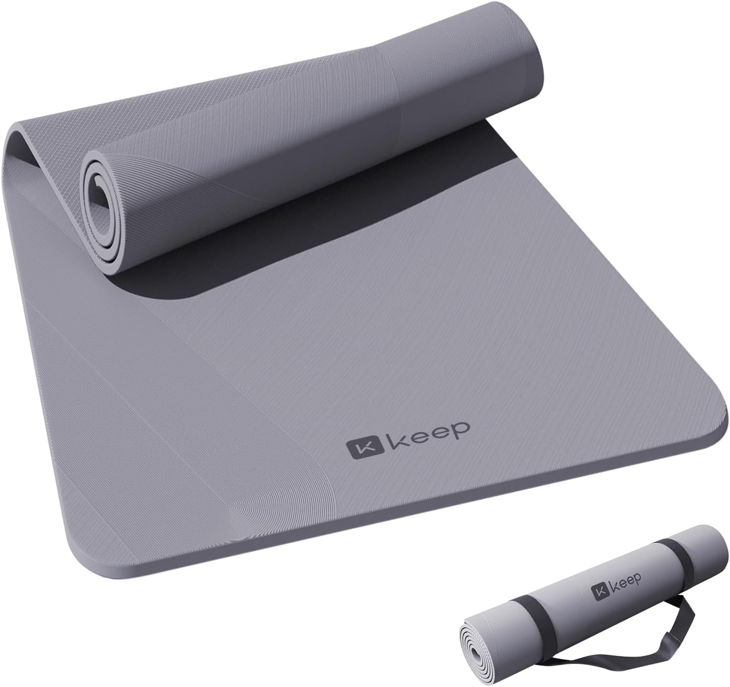 KEEP Yoga Mat, 32" Extra Wide Exercise Mat with Strap for Men and Women, 7mm Thick Double-Sided Non-Slip Eco-friendly Yoga Mat for Pilates, Workout and Fitness