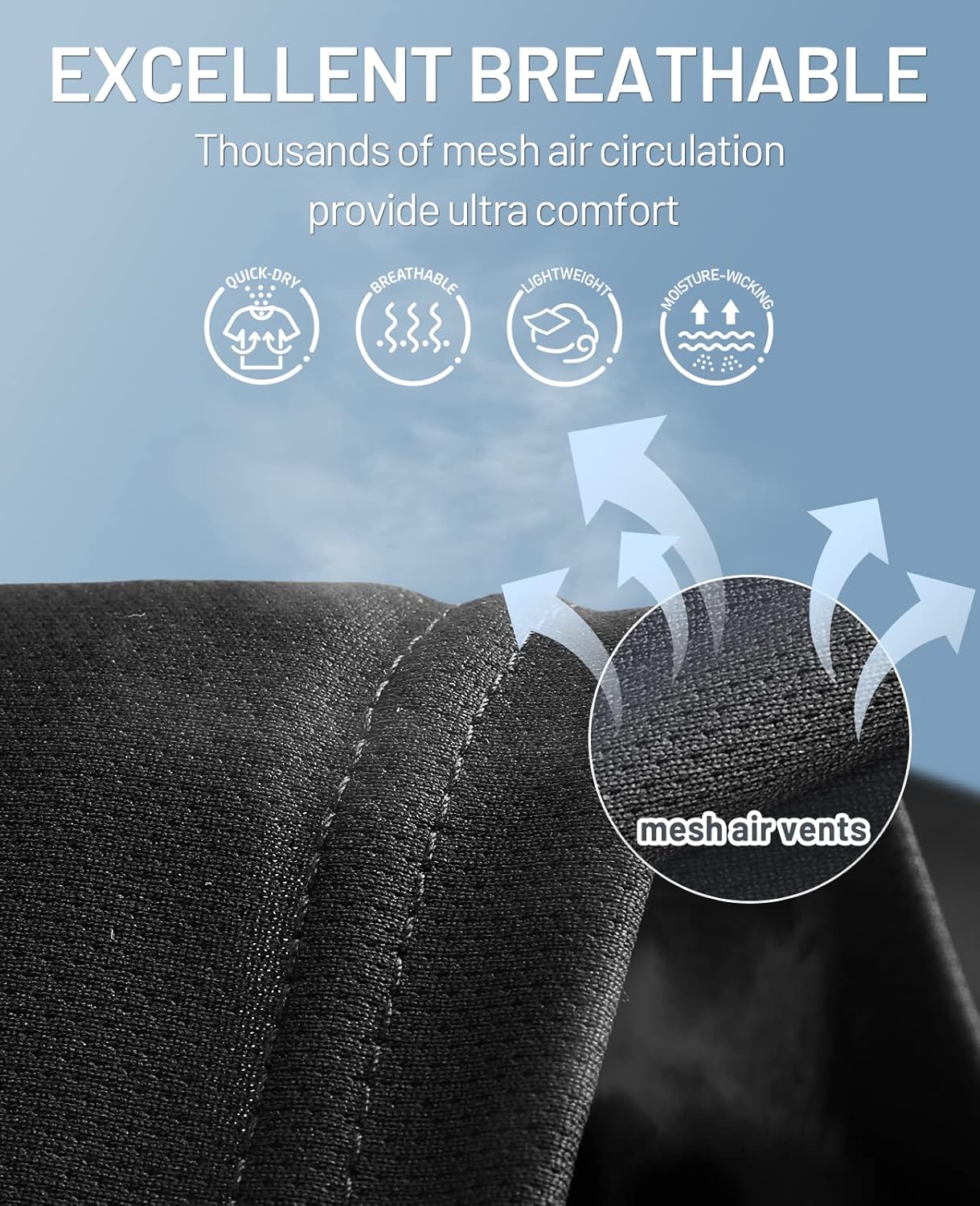- Excellent Breathable --- Soft polyester fabric surface with thousands of mesh air circulation provides comfortable which can wick moisture quickly to keep your body cool while indoor or outdoor activities