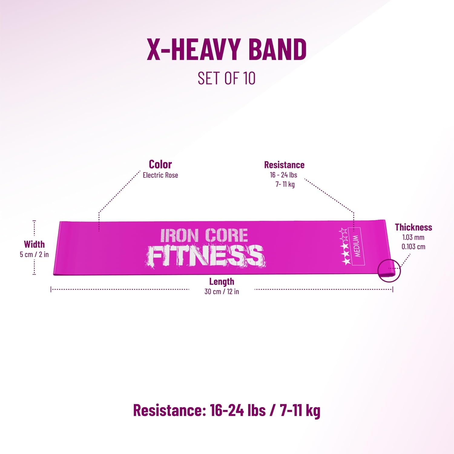 Latex Mini Resistance Bands Sets for Trainers, Bootcamp, Gym for Men and Women in Fun Colors - Ebook, Videos and Workout Chart Included by Iron Core Fitness