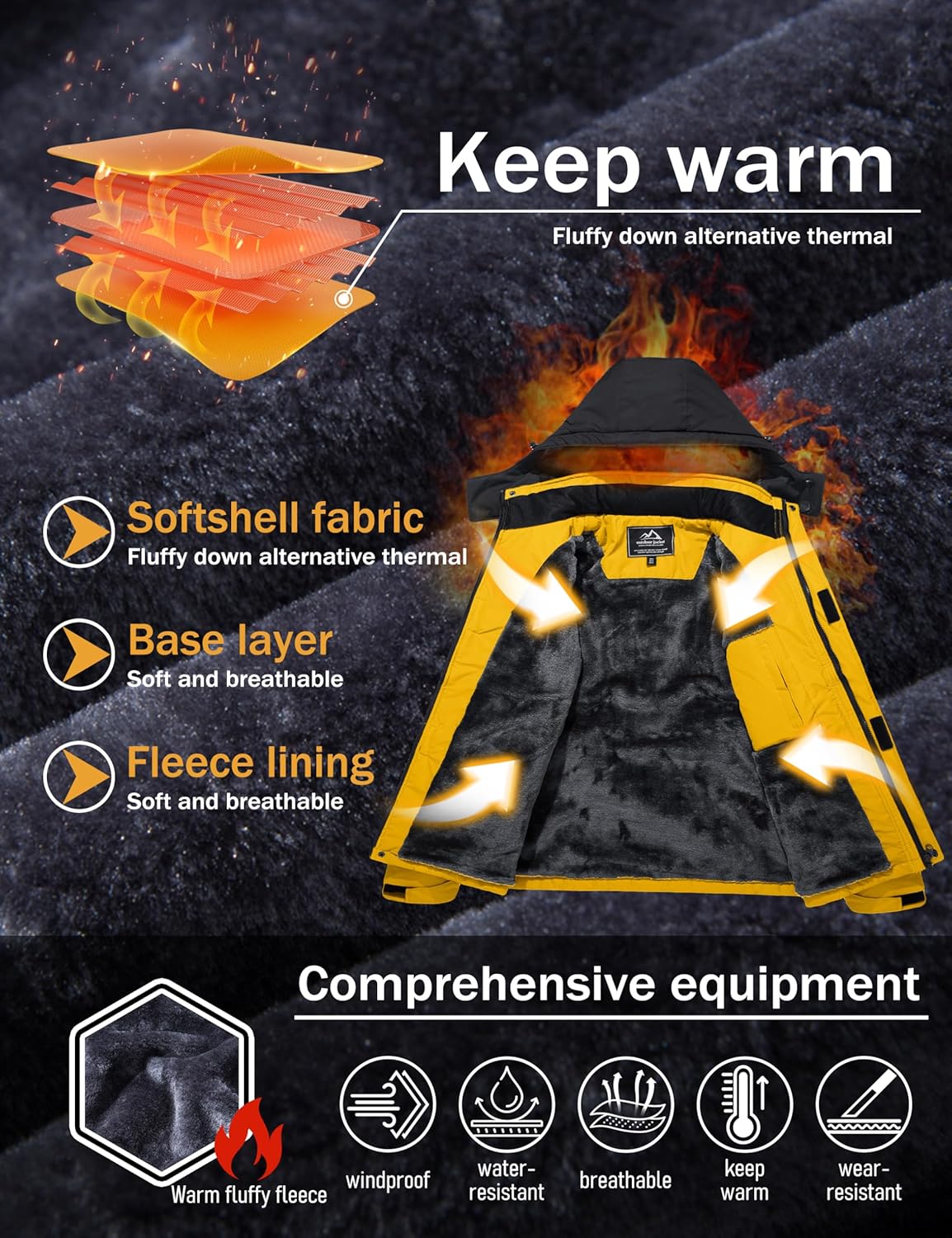 - Fleece Lining: Windproof Warm Jacket Coat With Thermal Fleece Lining to Keep You Warm in Cold Weather.