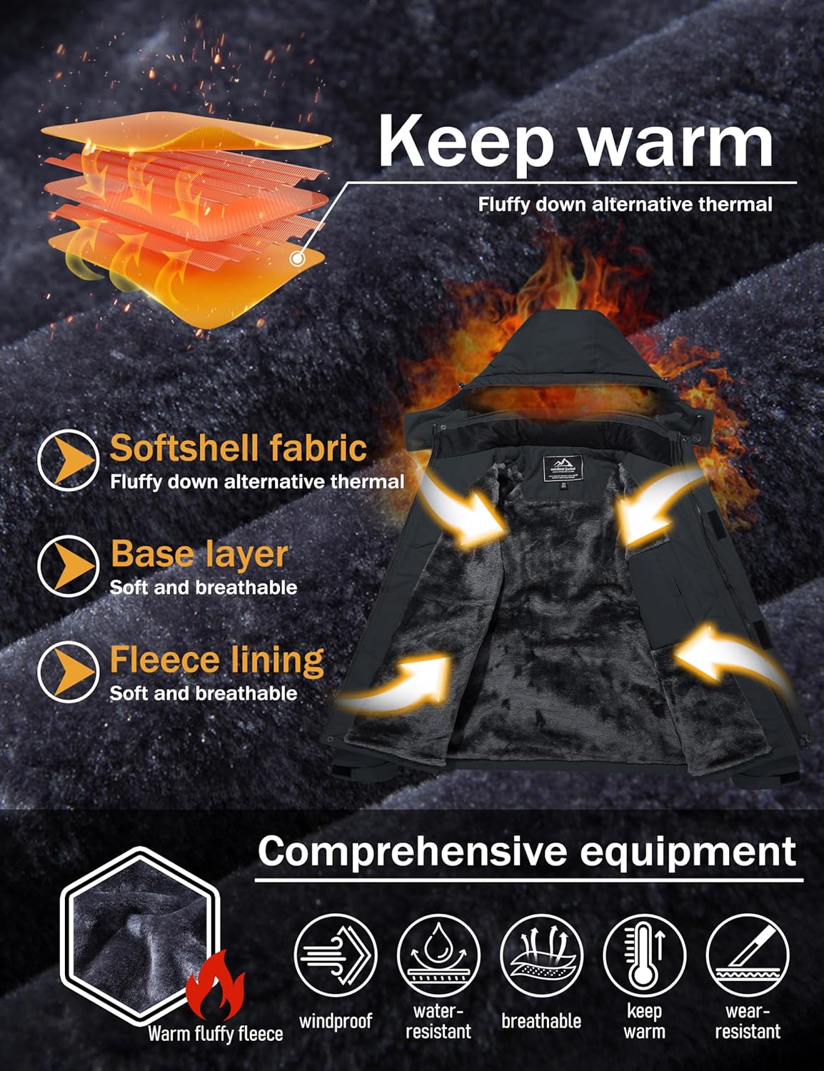 - Water repellent: Professional water repellent jacket, keep your body always dry and comfortable, you won't worry about getting wet while skiing, snowboarding, hunting, hiking in inclement weather.