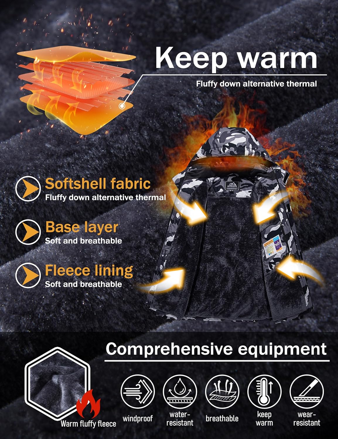 • Water repellent: Professional water repellent jacket, keep your body always dry and comfortable, you won't worry about getting wet while skiing, snowboarding, hunting, hiking in inclement weather.