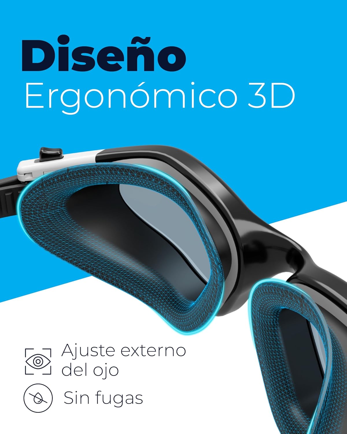 - β MORE COMFORT ~ This swim goggles offer soft & flexible silicone double seals designed to expand and contract to hug the unique contours of a swimmerβs face and achieve the right level of suction without applying excessive pressure around the eyes. In addition, the ergonomic 3D frame design ensures low water resistance and the best fit for a wide range of face shapes, men or women, adults or teenagers