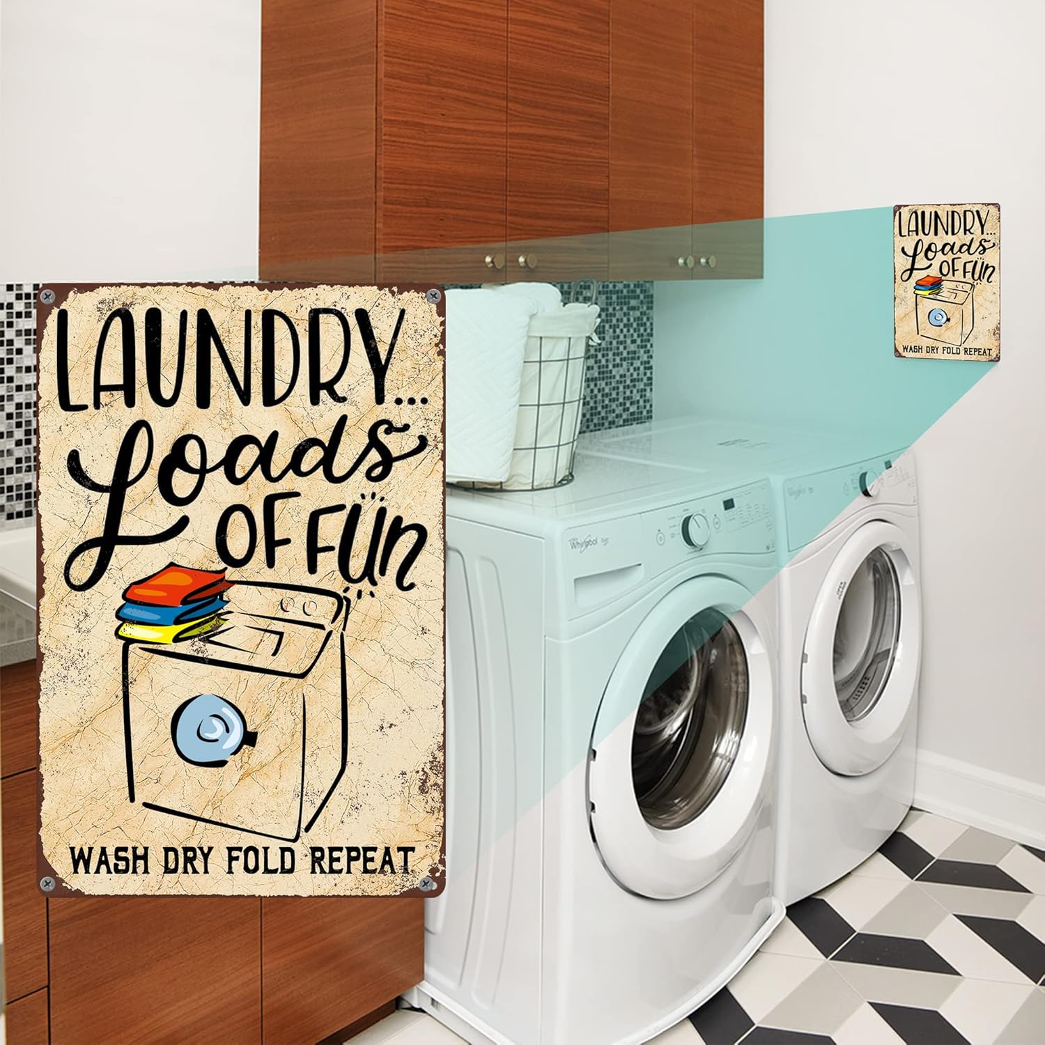 Gocolt Fun Laundry Sign - Vintage Home Decor Unique Accessory Tin Painting Signs - Fits Wall Mounts - Wash-Dry-Fold-Repeat 12x8 Inch