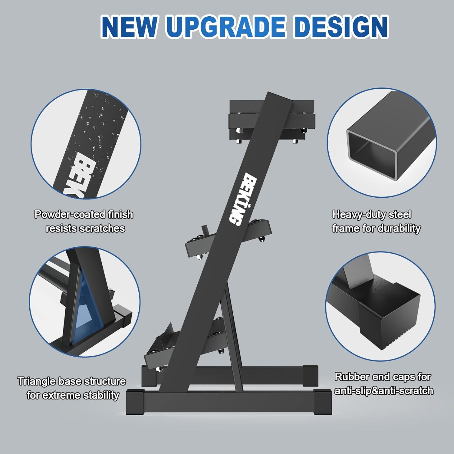 - 【STABLE & DURABLE ENSURE SAFETY】 The triangular support structure designed by mathematical calculation is stable, safe and reliable.Finished with oxidation-resistant coatings to prevent it from rusting and scratching.Rubberized end caps located on the underside of the weight stand enhances the traction and emphasizes safety.