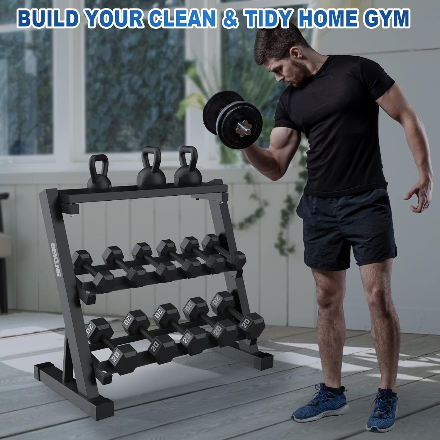 BEKING Dumbbell Rack, 3 Tier Weight Storage Rack for Dumbbells, Kettlebells, Multilevel Free Weight Organizer Stand for Home Gym Fitness, 1000-Pound Capacity