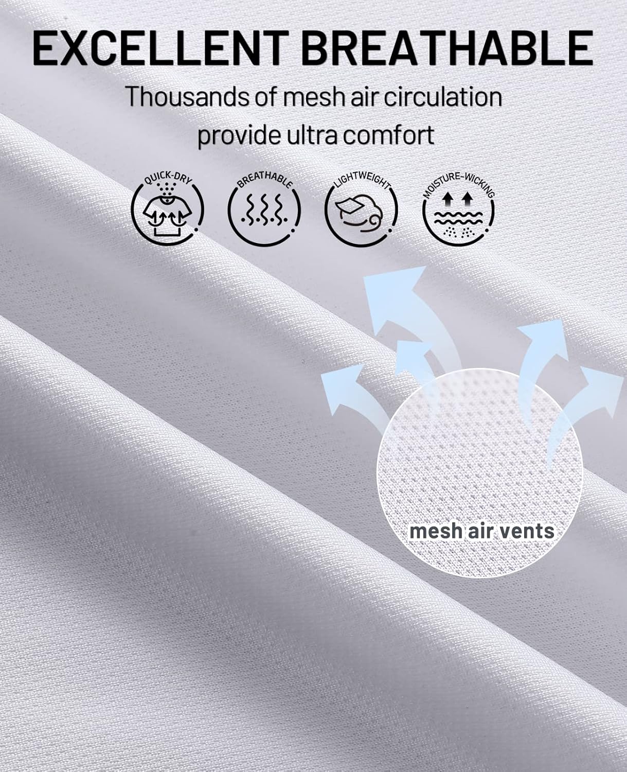 - Quick-dry & Breathable: This mens dry fit T-shirts feature superior mesh air circulation design, which works well in wicking away moisture in sweaty situation. Breathable material provide quick dry and cool without restriction and embarrassment