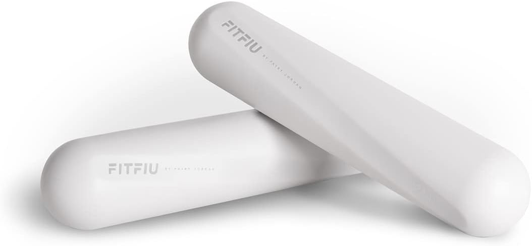 Fitness Pack of 4 Pilates Accessories: 1 Weights 2 Wristbands 2 Dumbbells 2 Dumbbells 2 Sliding Discs 1 Steel Elastic Band in White Silicone