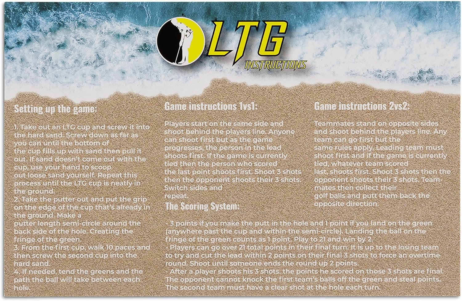 Set - America's Best Outdoor Beach Putting Game - Mini Golf on The Beach - Durable, Convenient, and Weatherproof - 2 Putters, 2 LTG Regulation Cups, Flags, Travel Bag, 6 Golf Balls