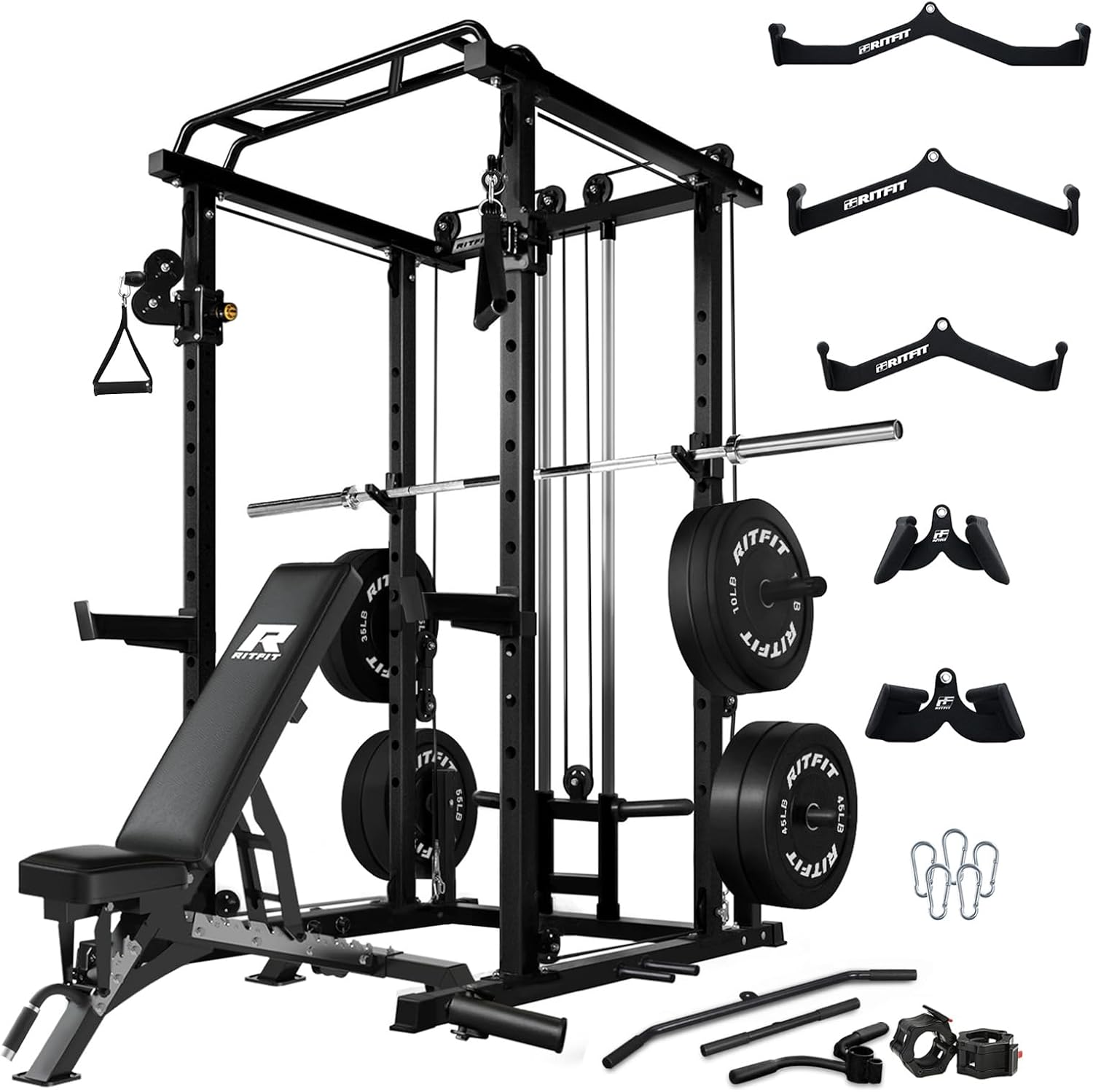 RitFit Multi-Function Squat Rack Power Cage PPC03 with Cable Crossover System, 1000LBS Capacity Power Rack and Packages with Optional Weight Bench, Barbell Weight Set, for Garage Workout & Home Gym