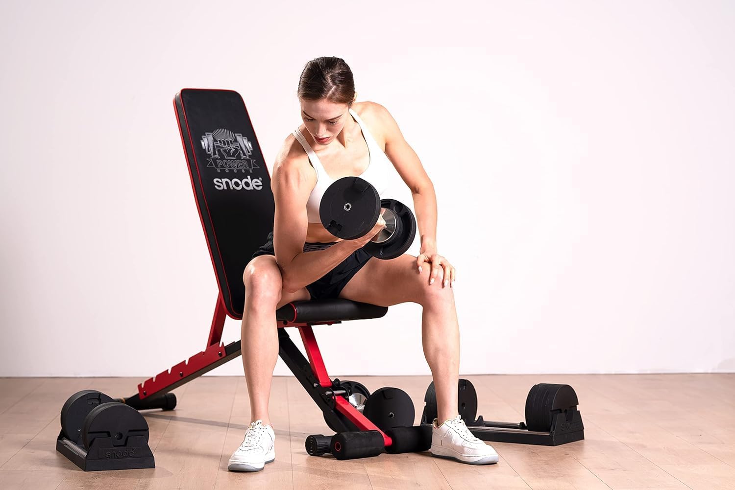 - 【Adjust weights in seconds】Turn the dial to adjust the weight. 8 weights set in one dumbbell, weight selection: 10, 20, 30, 40, 50, 60, 70, 80 lbs. SNODE Adjustable Dumbbells is to adjust the weight on both sides of the dumbbell at the same time.