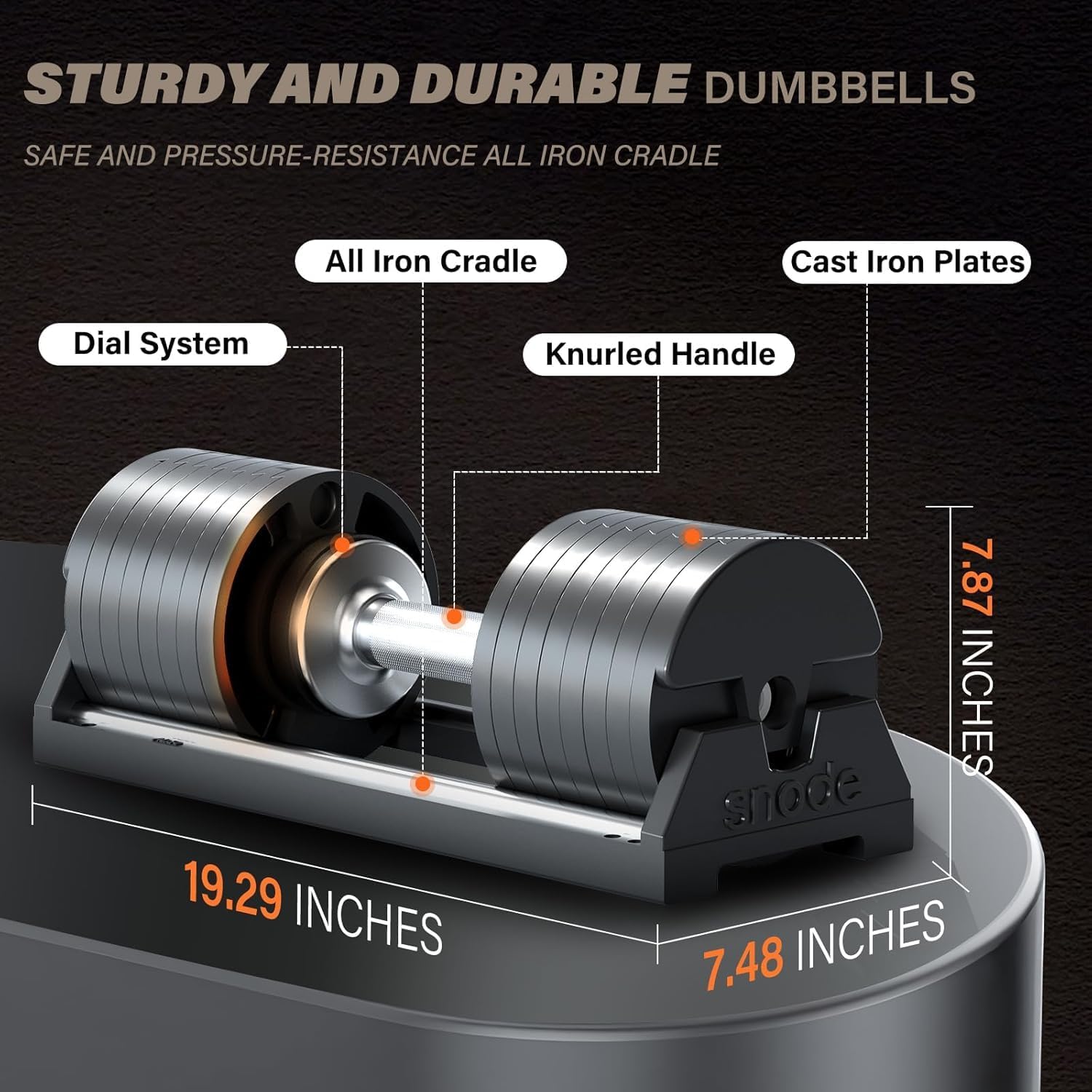 - 【High Quality & Durable】All major parts of the dumbbell are made of cast iron, which is durable and drop-resistant. The dumbbell cradle is also made of ductile iron, it is sturdy and has a strong weight-bearing capacity which means it will never get smashed by the dumbbell.