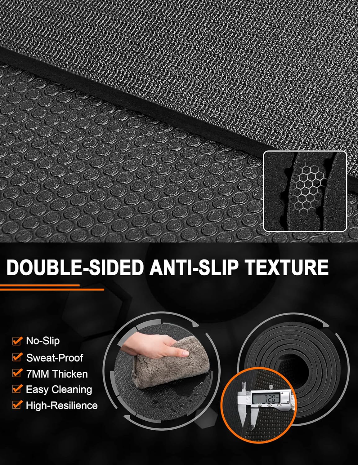- ✅EXTRA-LARGE HOME GYM MAT COVERS 72 SQUARE FEET: The 12’x6’x7mm large fitness mat instantly transforms any space into a professional gym, giving you and your partners more than enough room to workout on without feeling cramped, and the floor mat is even shoe-friendly, whether you're doing cardio, yoga, weightlift, dance including P90x, MMA, TAM, insanity, T25, Zumba, kettlebell, jumping rope or need large equipment mats to install underneath a treadmill or weight bench, try this exercise mat.