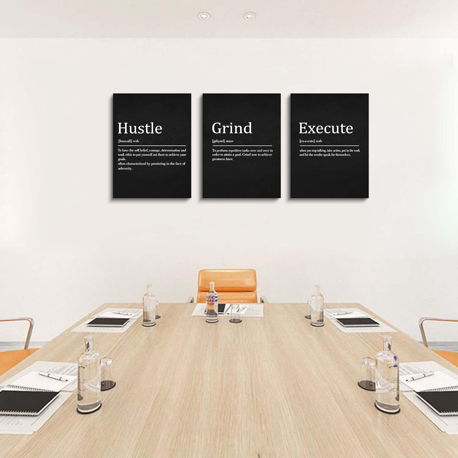 - 【Office Hustle Wall Art Decor】 The Size of the office canvas wall art set is: 12x16inchx3pcs (30x40cmx3pcs). The modern wall art prints perfectly combine quotes such as Execute, Failure, Success, making the artworks more inpirational and motivational. The inpirational wall art set is the best choice for home office gifts or boss office decoration.