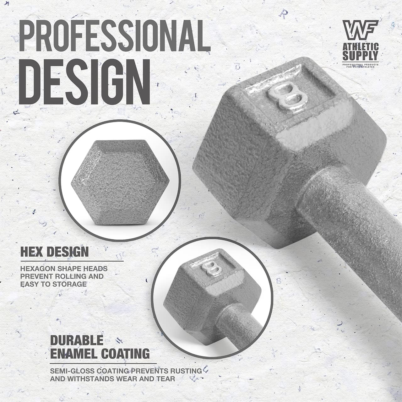 - π Durable and Reliable β Dumbbell heads are made from ASTM A48 Class 20 grey iron and joined together by a 1018 cold rolled solid steel handle finished with a durable industrial enamel coating. Weight sizes are respectively marked at their ends for easy distinction.