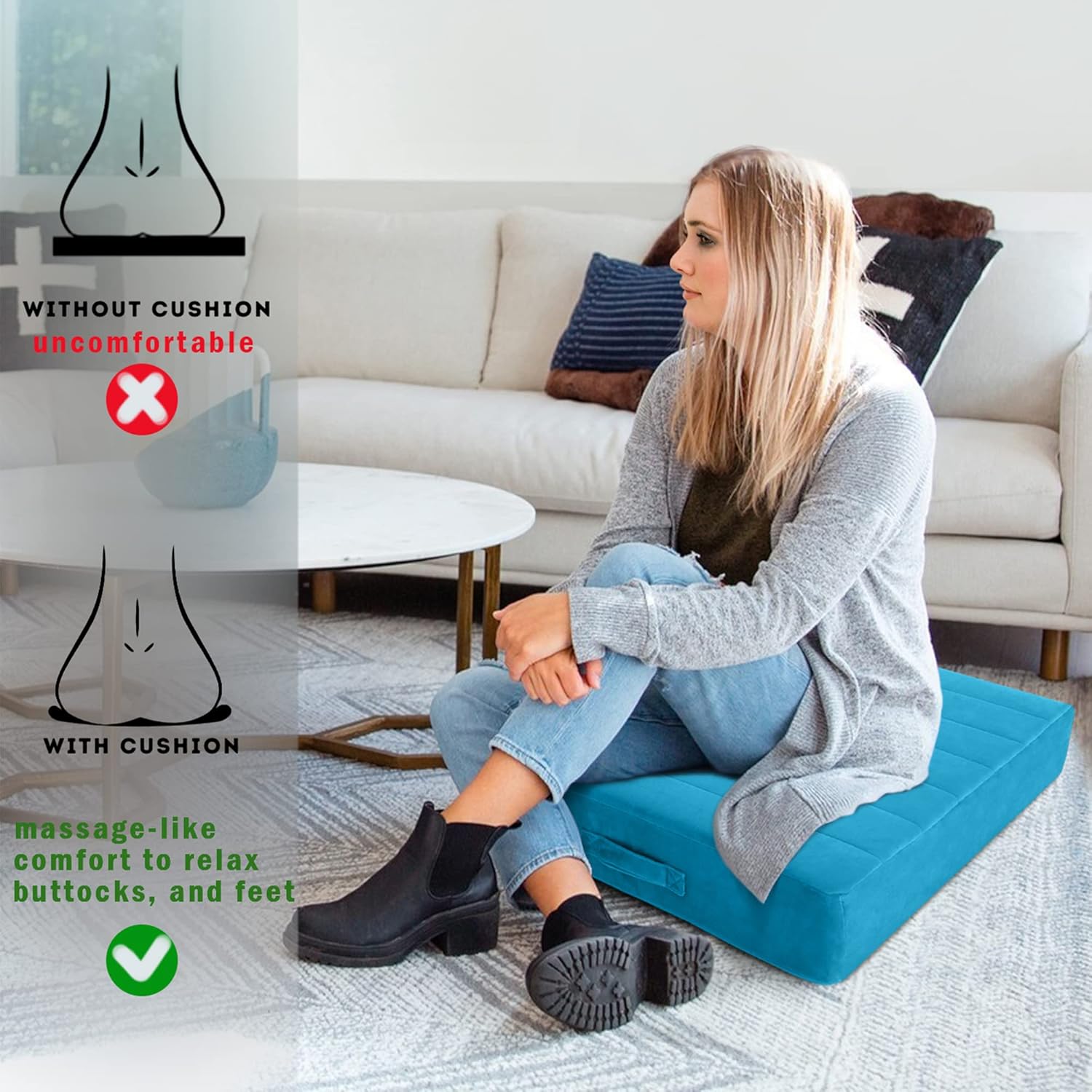 MeMoreCool Square Floor Pillow Seating for Adults Kids, Large Meditation Cushion Floor Pillow with Thick Foam & Soft Tufted Cover, Washable Big Pillow Seat Floor Cushion for Sitting Yoga 22" Blue