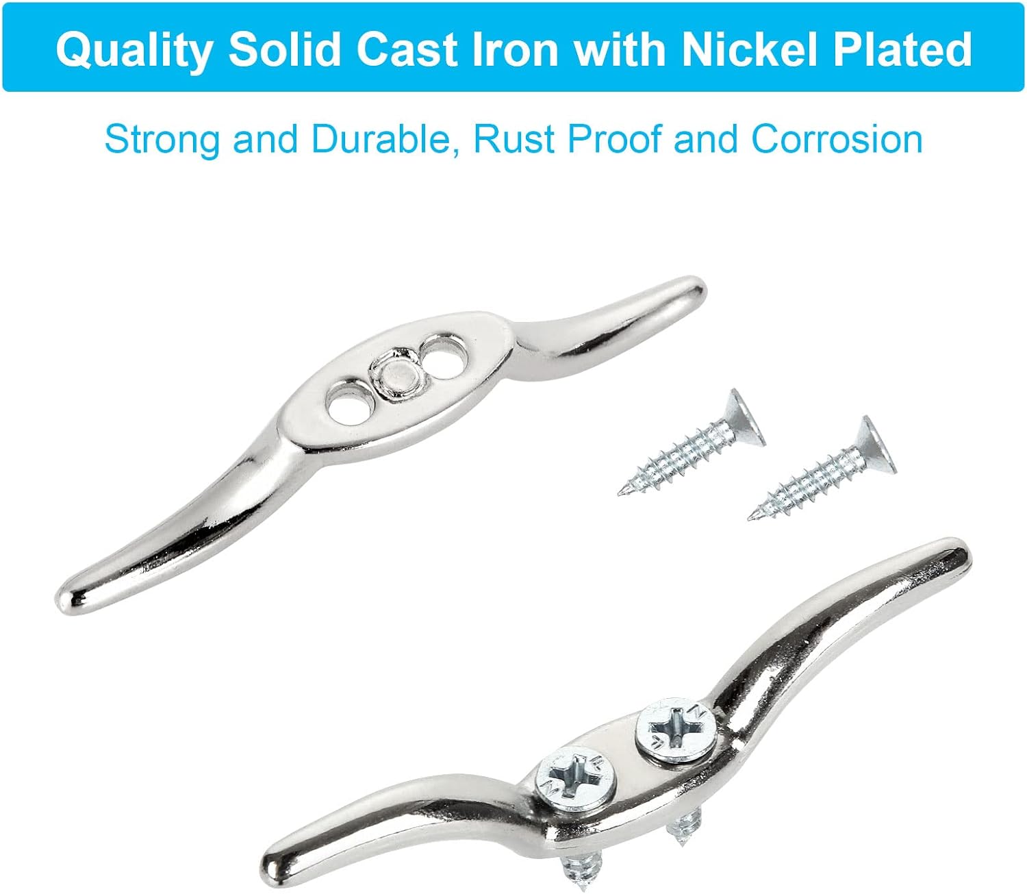 - Quality Cast Iron - The boat rope cleat is made of high quality solid cast iron with nickel plated surface, which is durable, resistant to fracture and corrosion, rust proof and bright and beautiful appearance, and can be used for a long time.