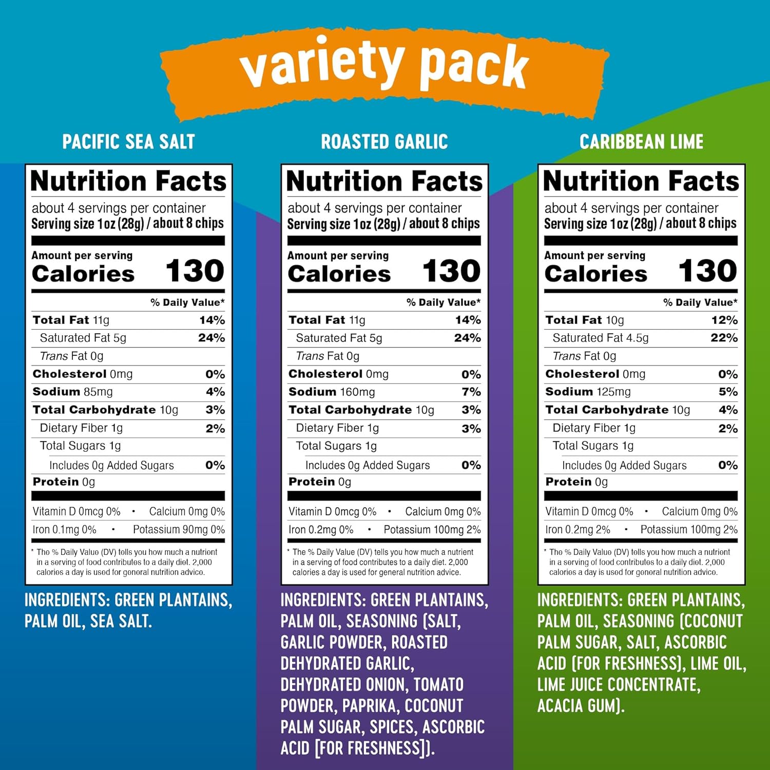 Solula Plantain Crisps Authentic Tostones, Variety Pack, 4 Ounce (Pack of 6), Pacific Sea Salt, Roasted Garlic and Caribbean Lime, Kettle Cooked Chips, Gluten Free, Paleo Friendly, Grain Free, Vegan