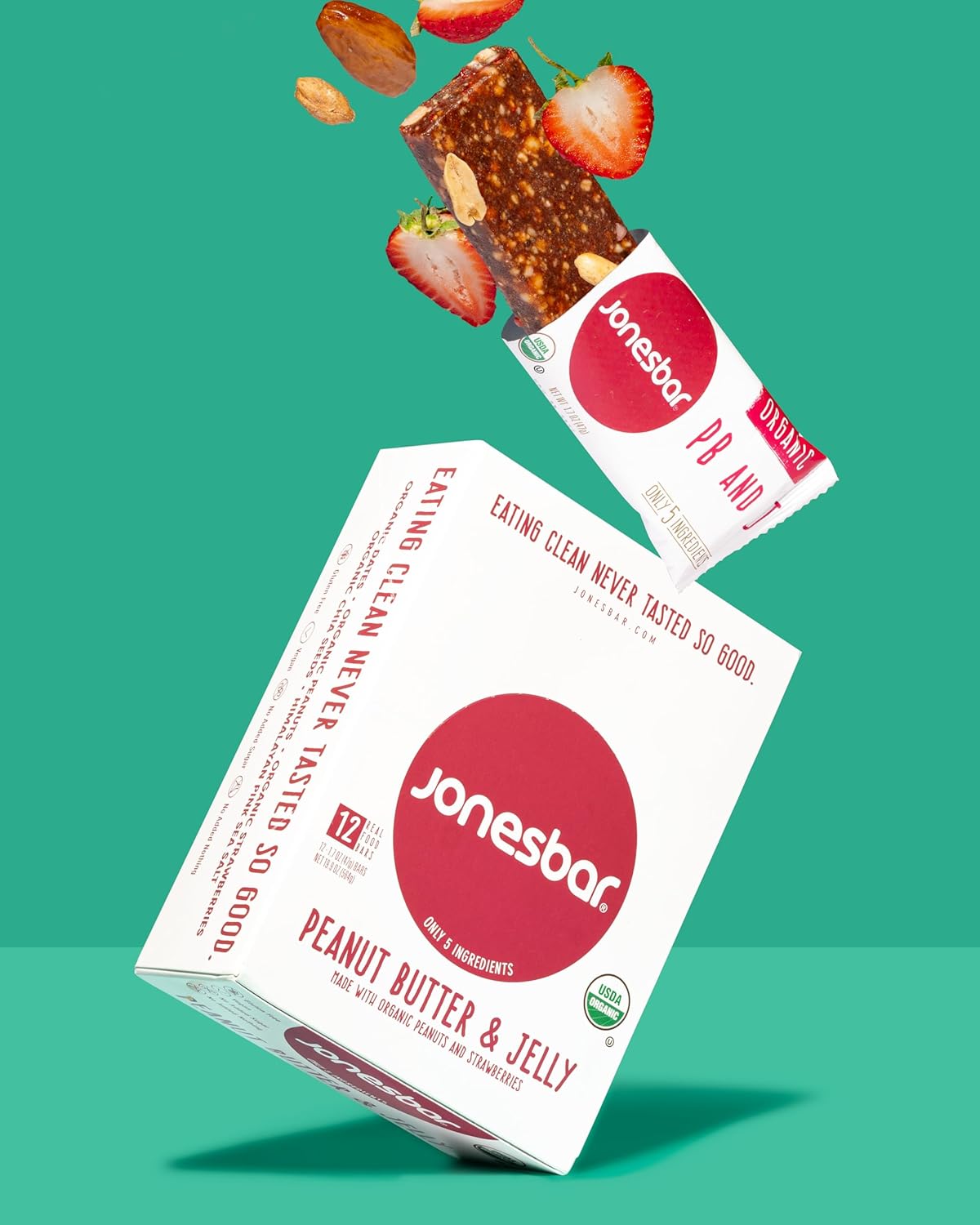 JONESBAR (Peanut Butter & Jelly, 4 Count (Pack of 1)), USDA Organic Fruit & Nut Bar, Non-GMO, Kosher, Vegan, Gluten Free, Simple Snack Bar