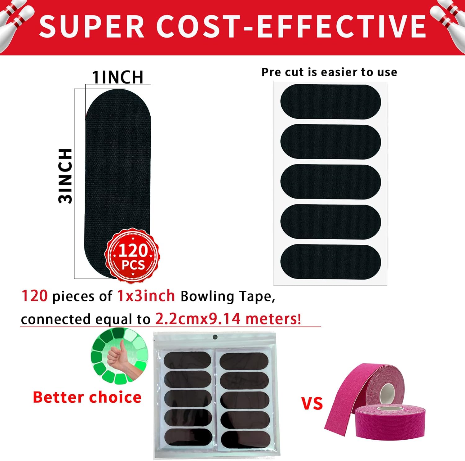 - Enjoy a happy bowling without trouble:This thumb tape can let you and your family and friends play bowling all day. It can prevent your thumb and other fingers from fatigue and pain. It's a great help to improve your bowling skills because you can practice longer