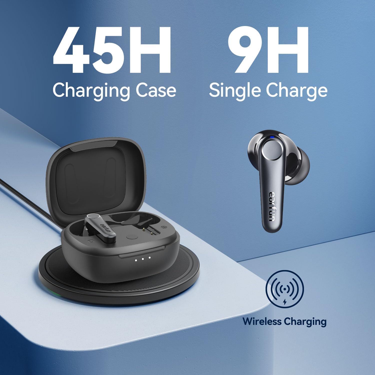 EarFun Air Pro 3 Noise Cancelling Earbuds, Qualcomm® aptX™ Adaptive Sound, 6 Mics CVC 8.0 ENC, Bluetooth 5.3 Earbuds, Multipoint Connection, 45H Playtime, App Customize EQ, Wireless Charging