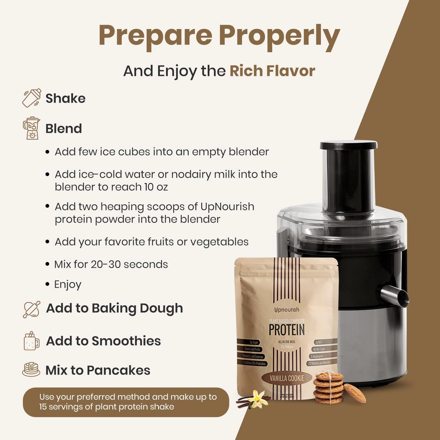 - π‘π¨π§π₯ππ§ππ’π‘ ππ‘π¬π§ππ π, ππ‘π¬πͺπππ₯π: Whether at work, workouts, or dining, UpNourish Protein Powder effortlessly fits into your lifestyle, providing high-quality protein whenever you need it. Ideal for Vegan and Keto diets, it's a perfect option for those looking to maintain a balanced and nutritious diet