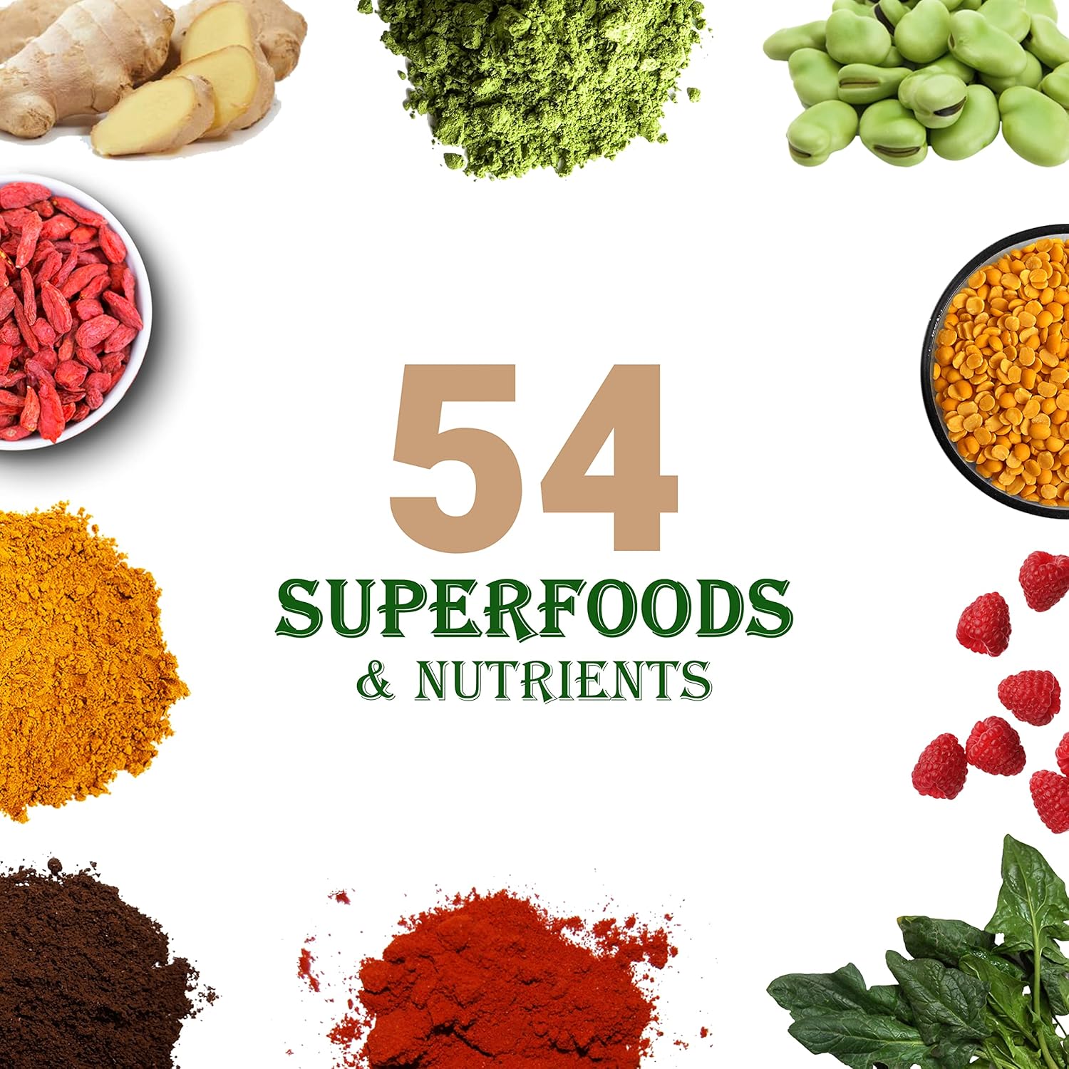- π±π° π¦π¨π£ππ₯ππ’π’ππ¦ ππππ‘π: Containing 54 superfoods, like alfalfa, broccoli, brussels sprouts, kale, black currant, spinach, blueberry, goji berry, raspberry, and seabuckthorn, rich in various vitamins, minerals to supports immune system health