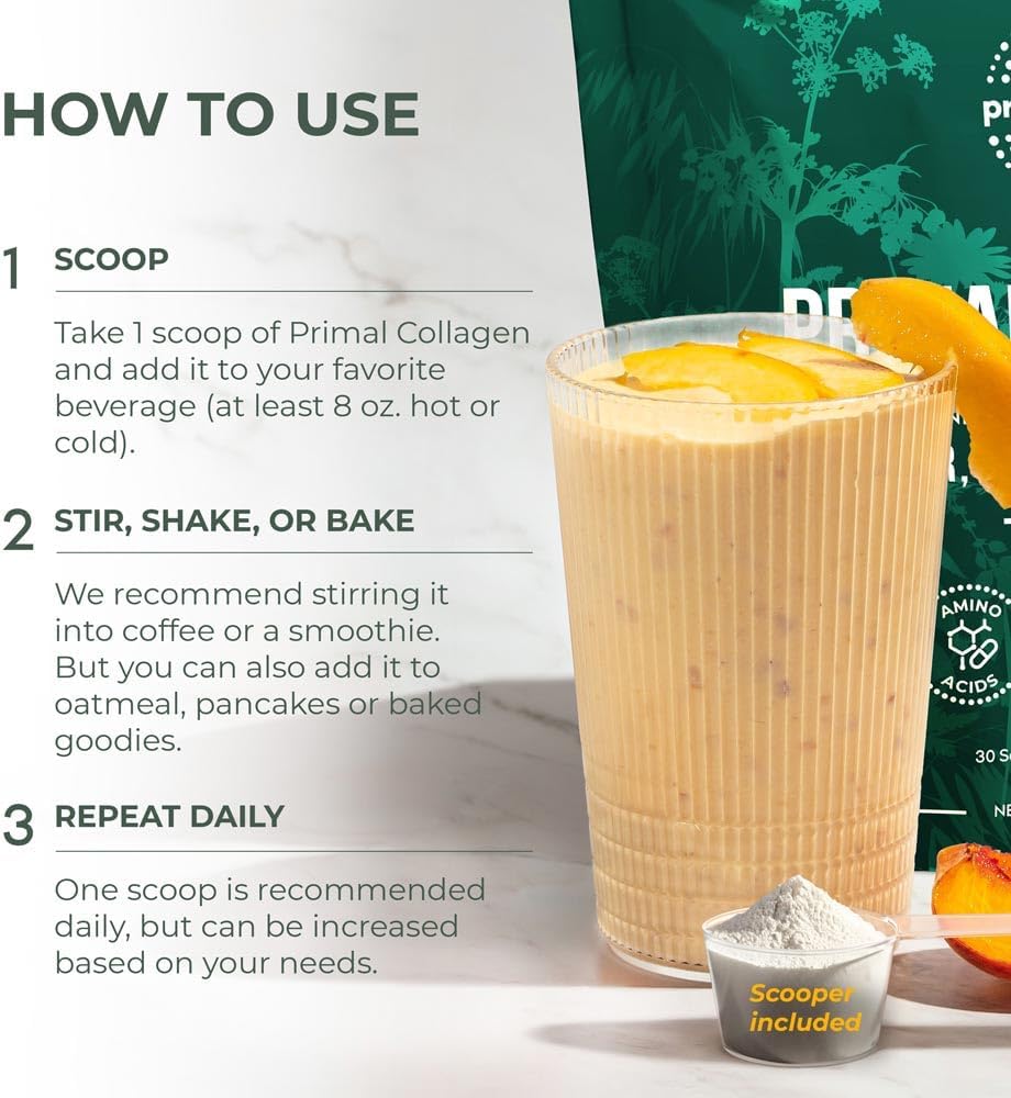 - Featuring GelcoPEP Technology: Primal Collagen is formulated to easily dissolve into your drink of choice, for an unflavored collagen powder that is easy to add to your everday routine