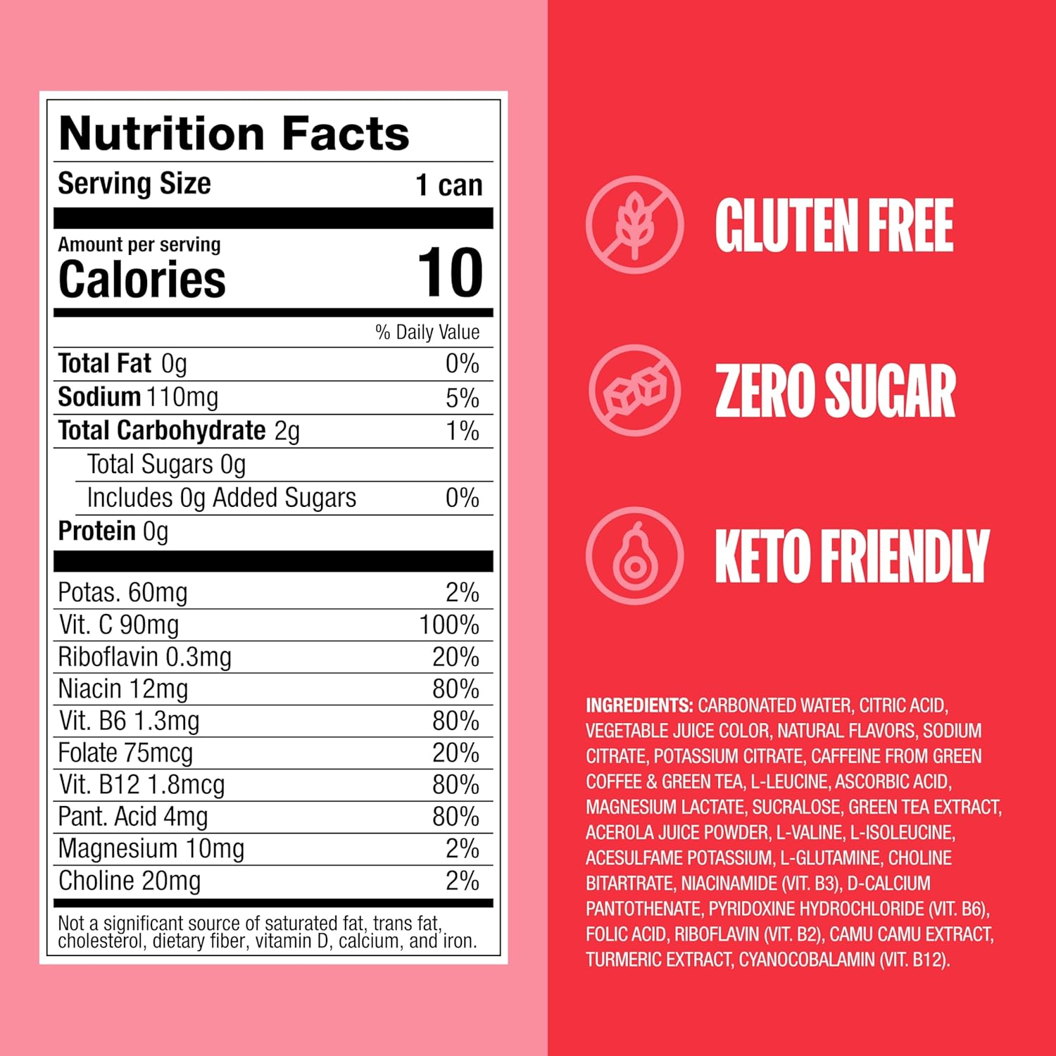 ZOA Zero Sugar Energy Drinks, Strawberry Watermelon - Sugar Free with Electrolytes, Healthy Vitamin C, Amino Acids, Essential B-Vitamins, and Caffeine from Green Tea - 12 Fl Oz (12-Pack)
