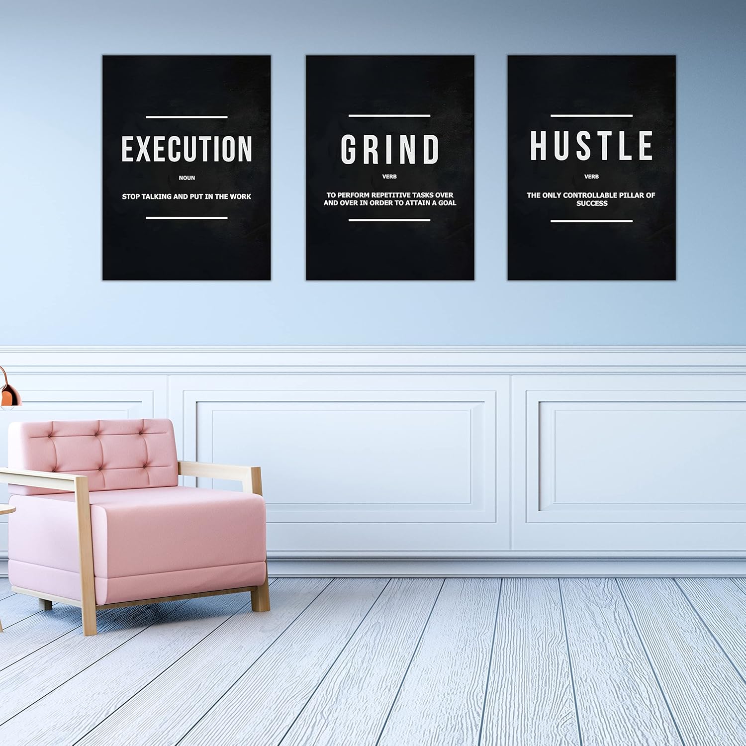 Success Canvas Painting Wall Art Quote Motivational Wall Art Execute Wall Decor 3 Pieces Black Poster Positive Inspirational Framed Artwork Prints Picture for Living Room Office 72''Wx 36''H