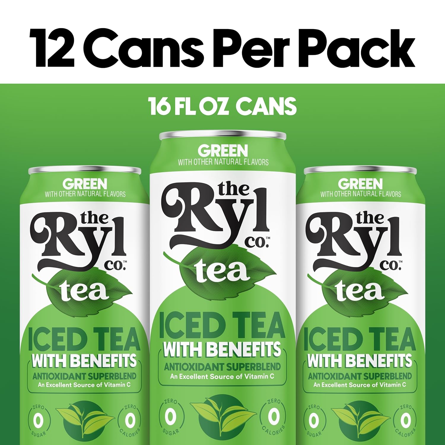 Ryl Iced Tea, Green, Antioxidant Superblend, Zero Sugar, Low Carb, Zero Calorie Iced Tea, 16.0 Fl Oz (12-Pack)