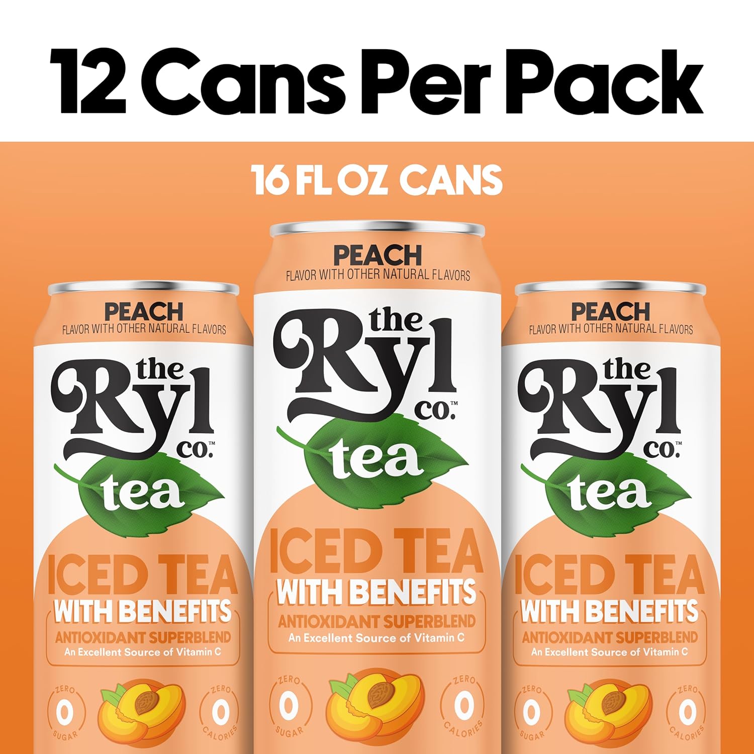 Ryl Iced Tea, Peach, Antioxidant Superblend, Zero Sugar, Low Carb, Zero Calorie Iced Tea, 16.0 Fl Oz (12-Pack)