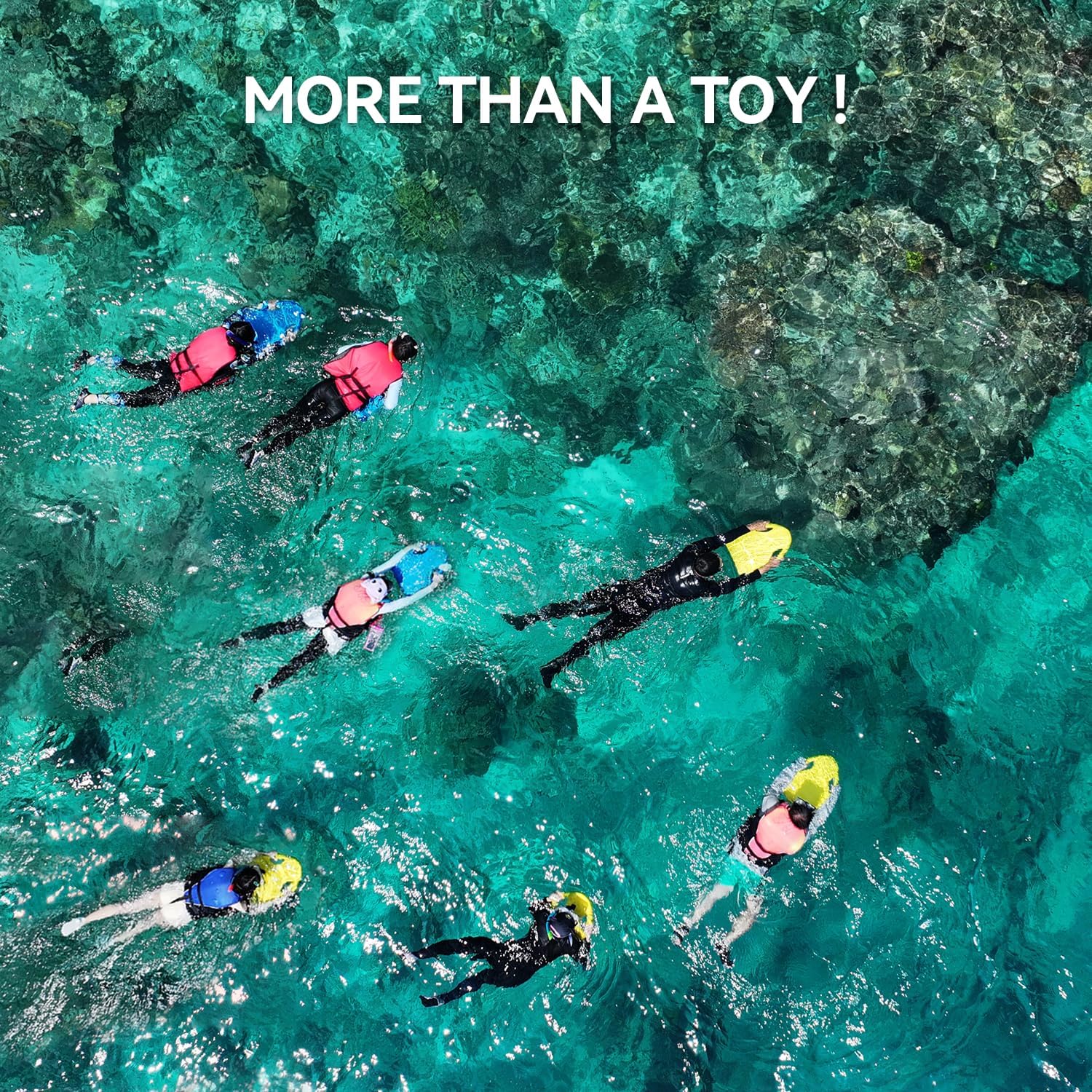 - Suitability: This electric kickboard is a reliable swimming aid for all beginners, helping them improve their skills and balance in the water. It can hold up to 120kg (265lbs), providing maximum water fun for all ages in the safest possible way.