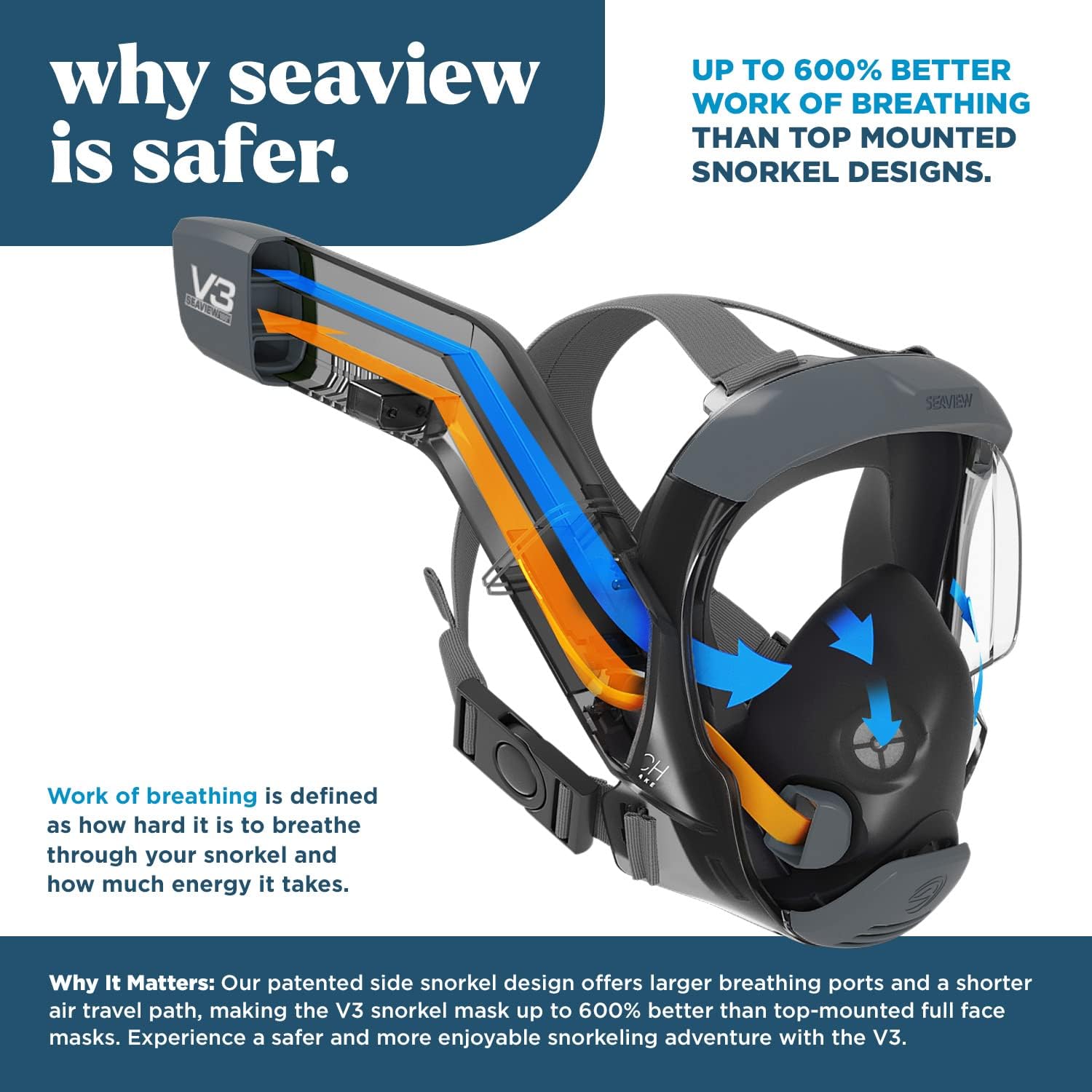 Seaview 180 V3 Full Face Snorkel Mask Adult- The V3 is The Perfect Snorkeling Gear for Adults- Snorkel Mask with 180 Panoramic Viewing and Up to 600% Easier Breathing- Patented Flowtech Air Intake