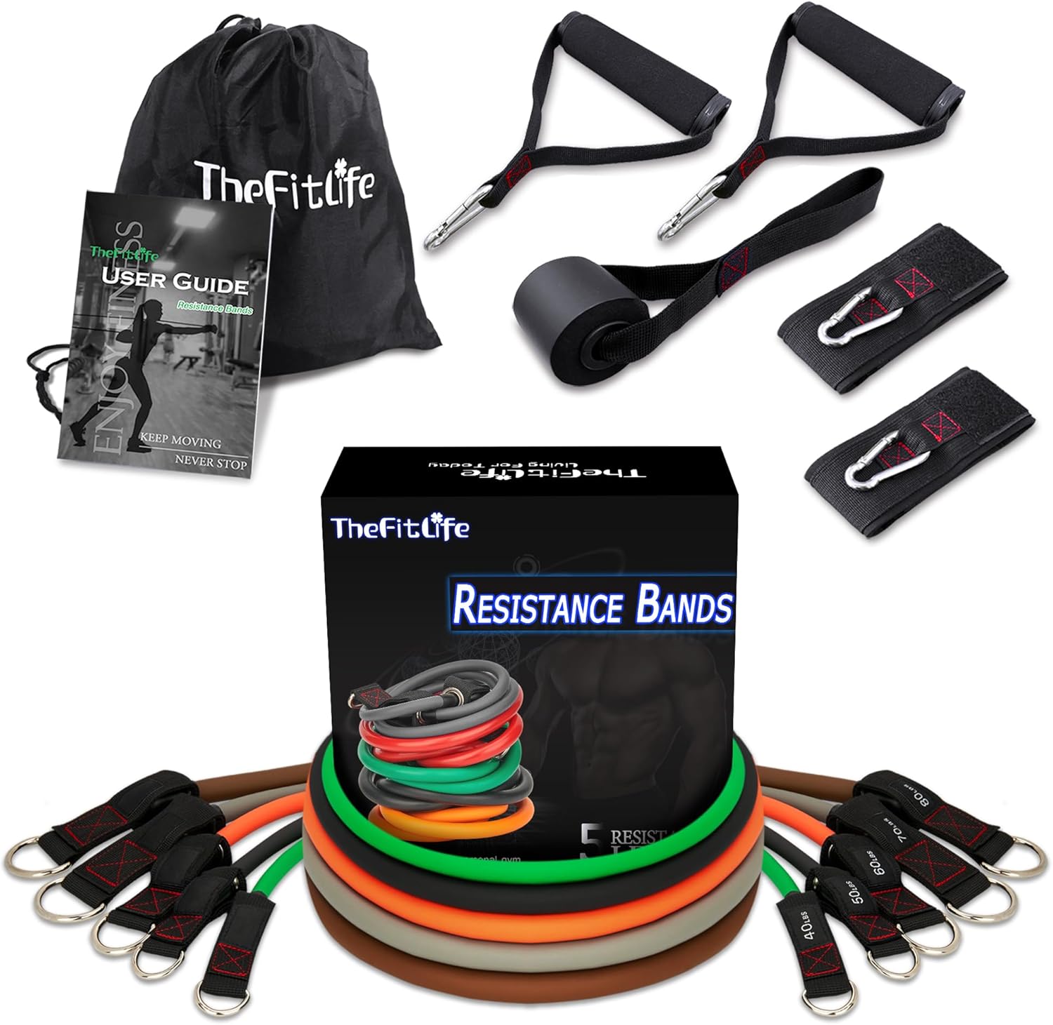 TheFitLife Resistance Bands with Handles - Designed for American Body Types, Exercise Workout Tubes for Men, Women, Includes Large Handles, Ankle Straps, Door Anchor, Fitness Levels